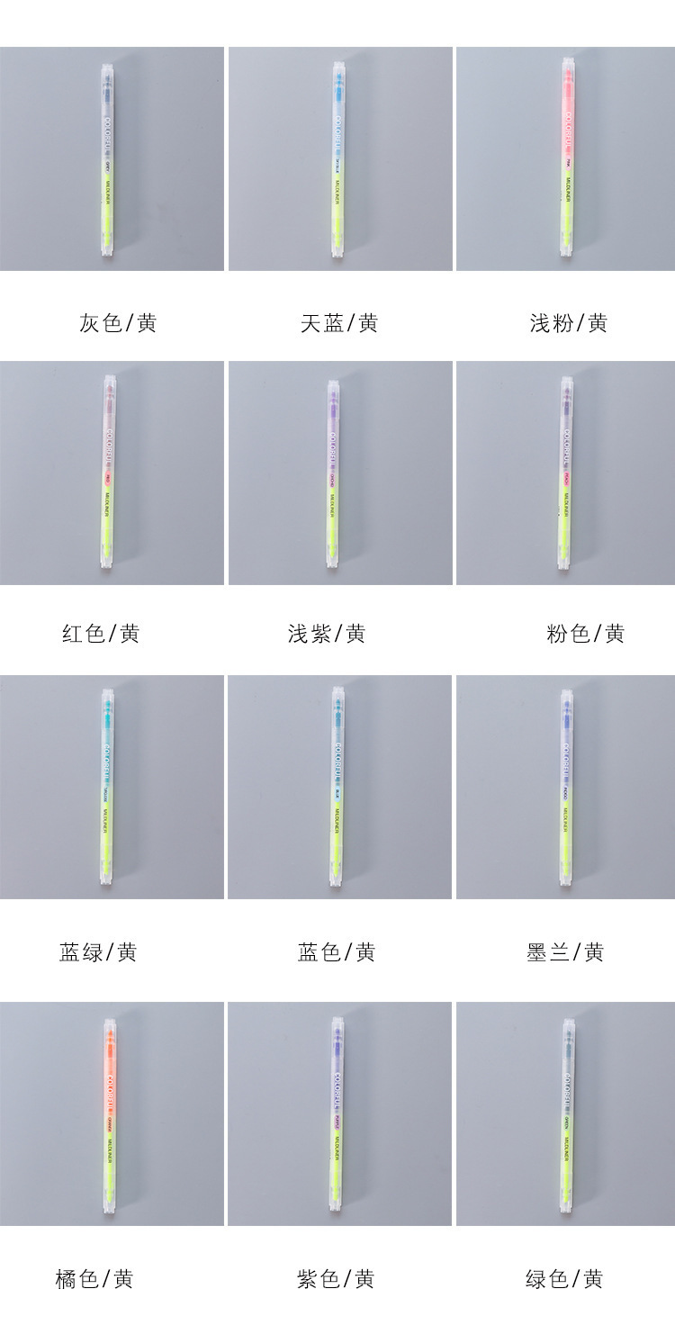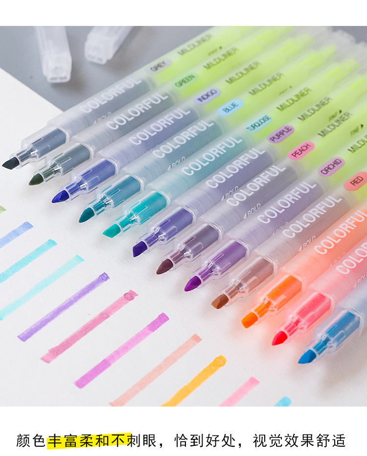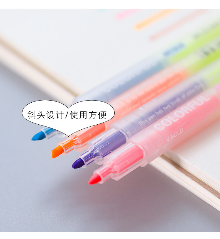 新年荧光笔护眼手账清新双色双头日记荧光笔韩酷批发12色标记笔82