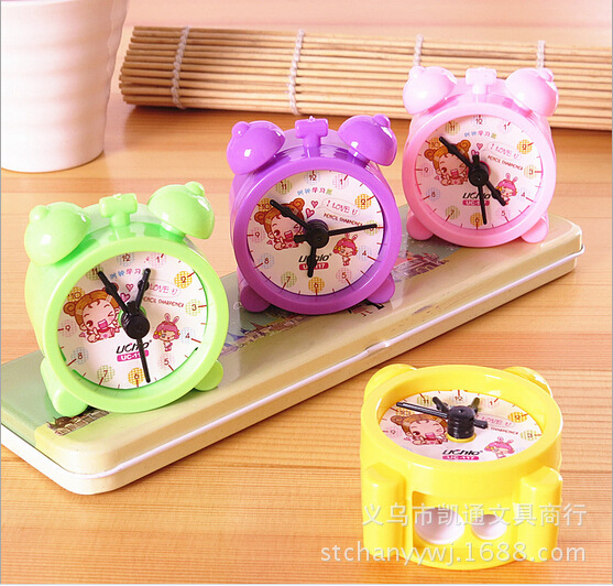 117 创意可爱 学生奖品卡通时钟双孔卷笔刀 削笔器可爱铅笔刨