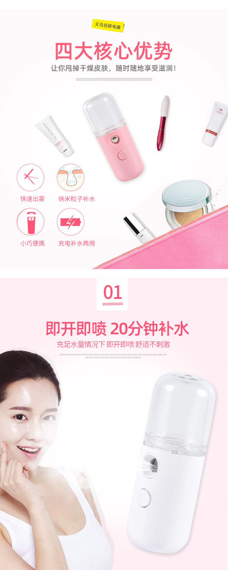 补水仪补水喷雾仪蒸脸器脸部加湿家用充电便携小型随身冷喷保湿