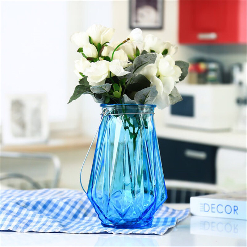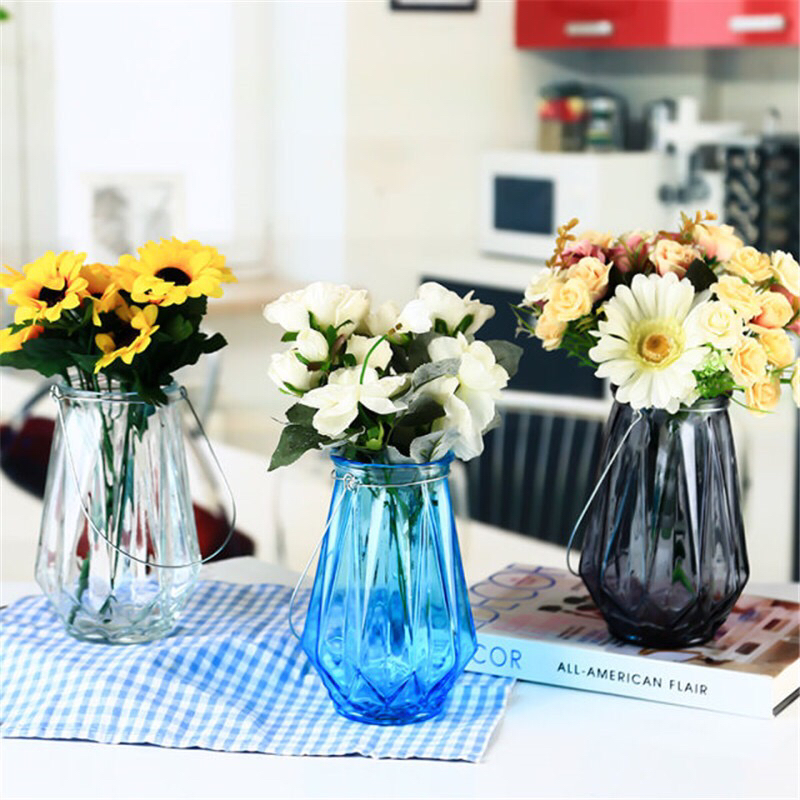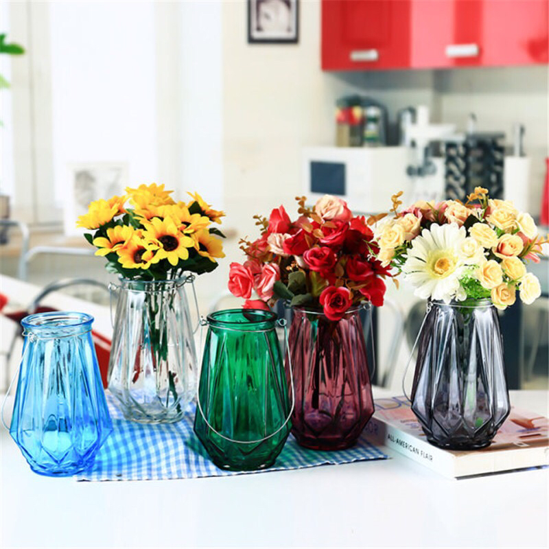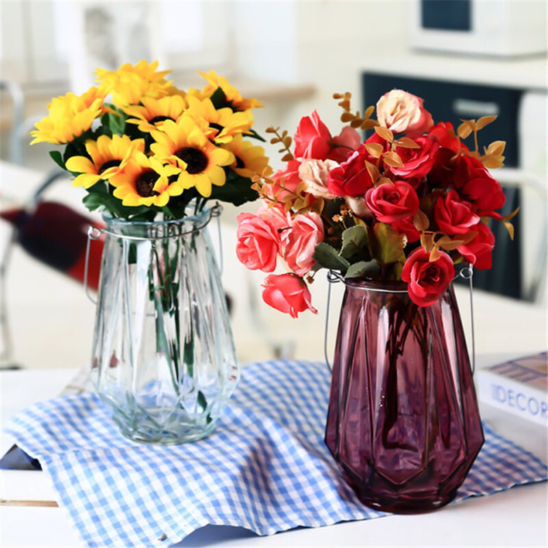 铁丝竖条玻璃花瓶工艺品欧式家居客厅办公插鲜花富贵竹摆件 投诉