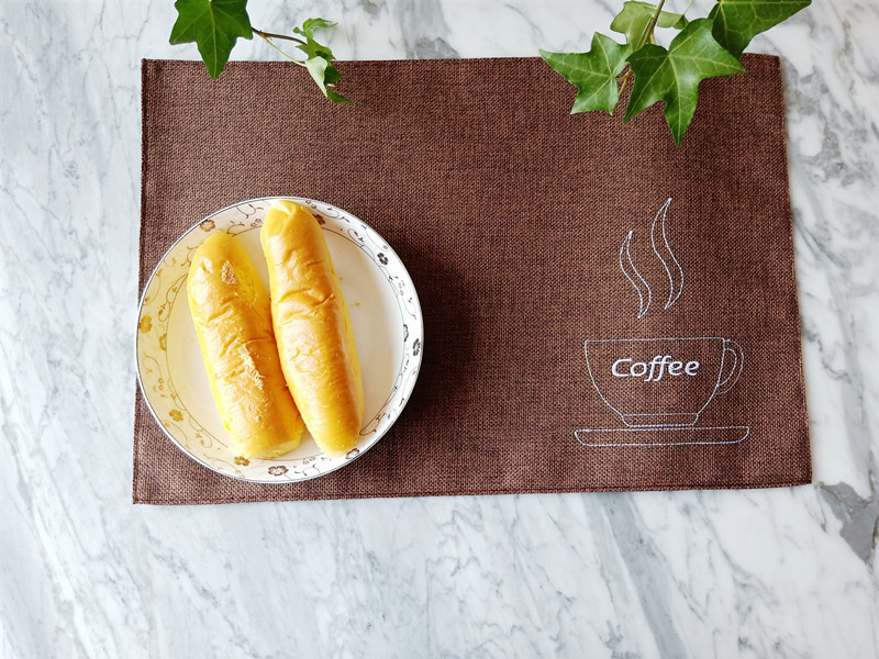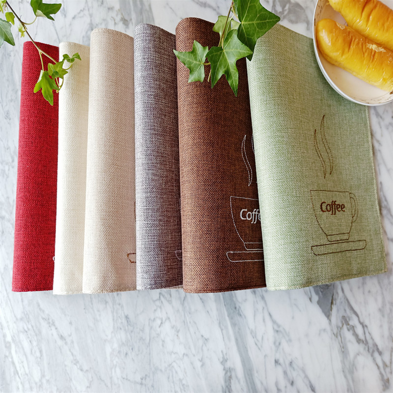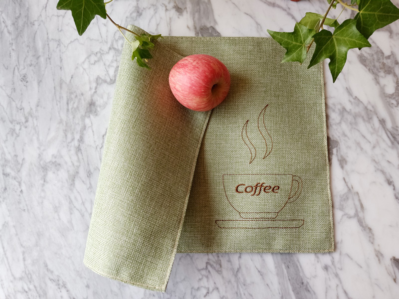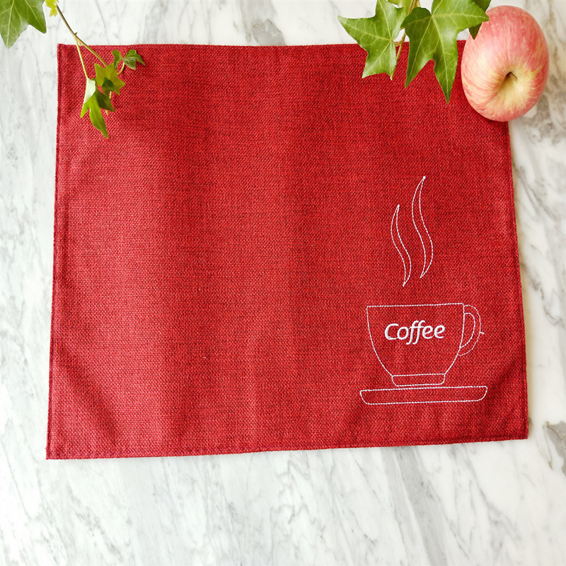 【品 名】双层棉麻咖啡杯刺绣系列餐垫