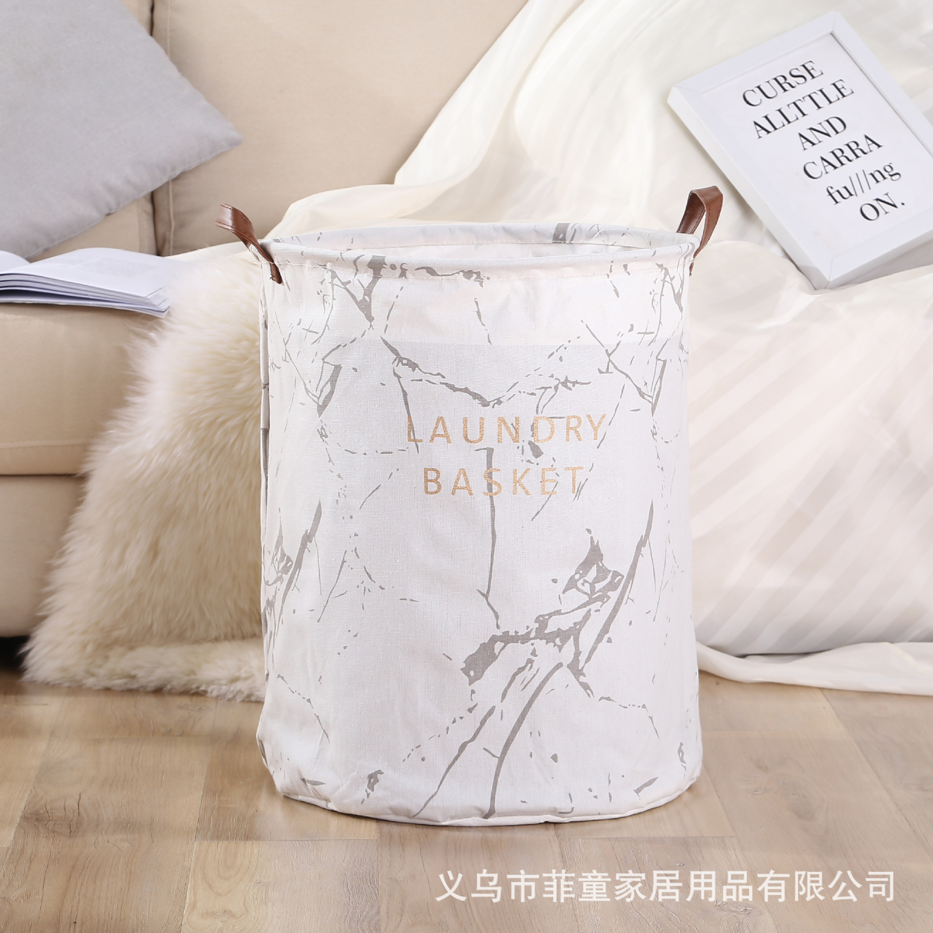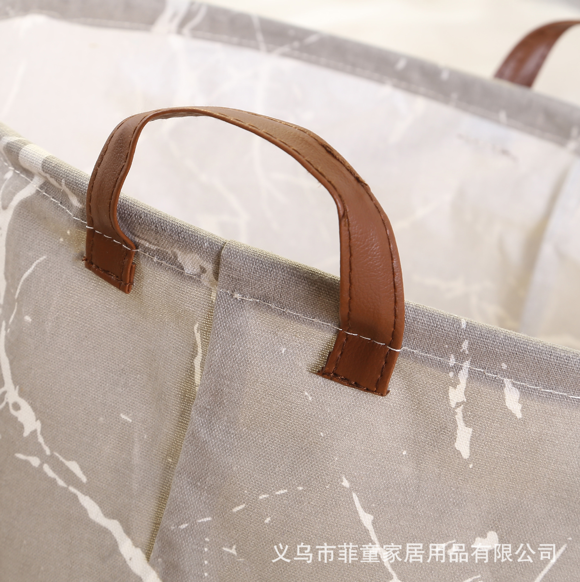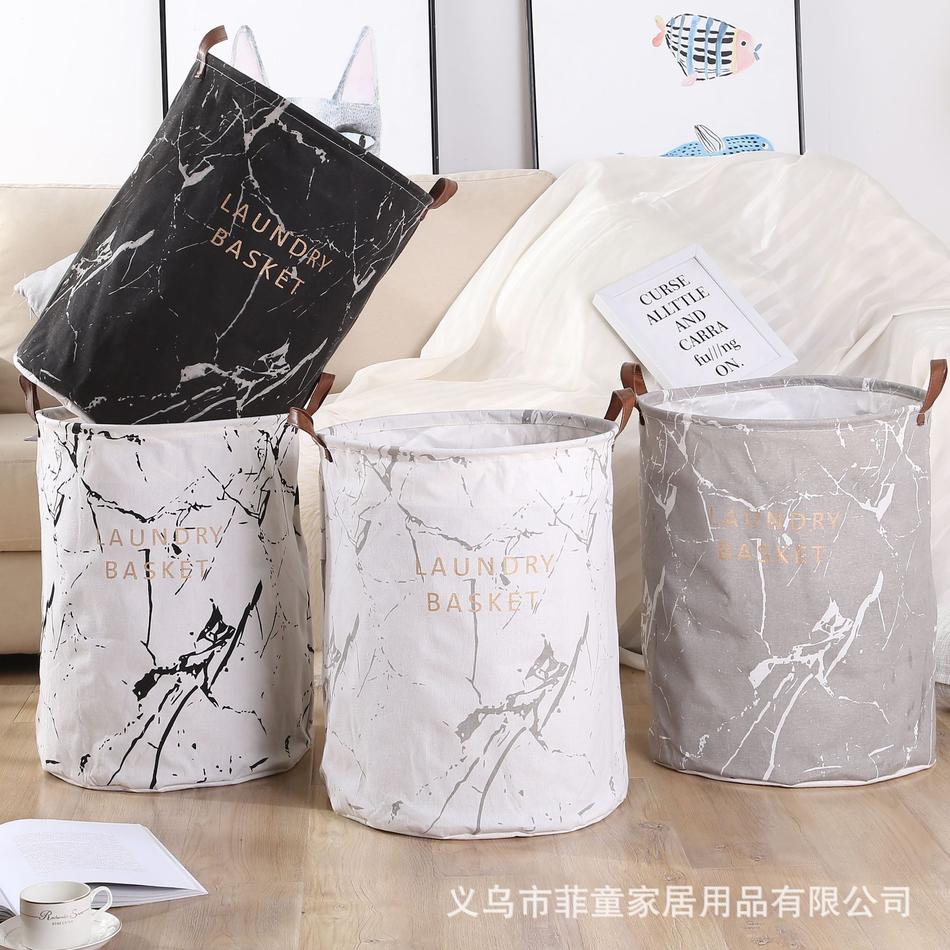 品名:北欧风棉麻布艺防水可折叠脏衣篮大理石印字花纹洗衣篓