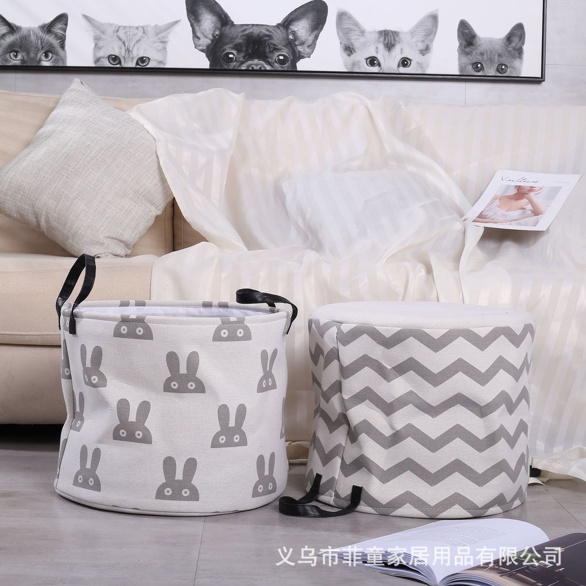 品名:布艺玩具收纳筐棉麻卡通脏衣篮