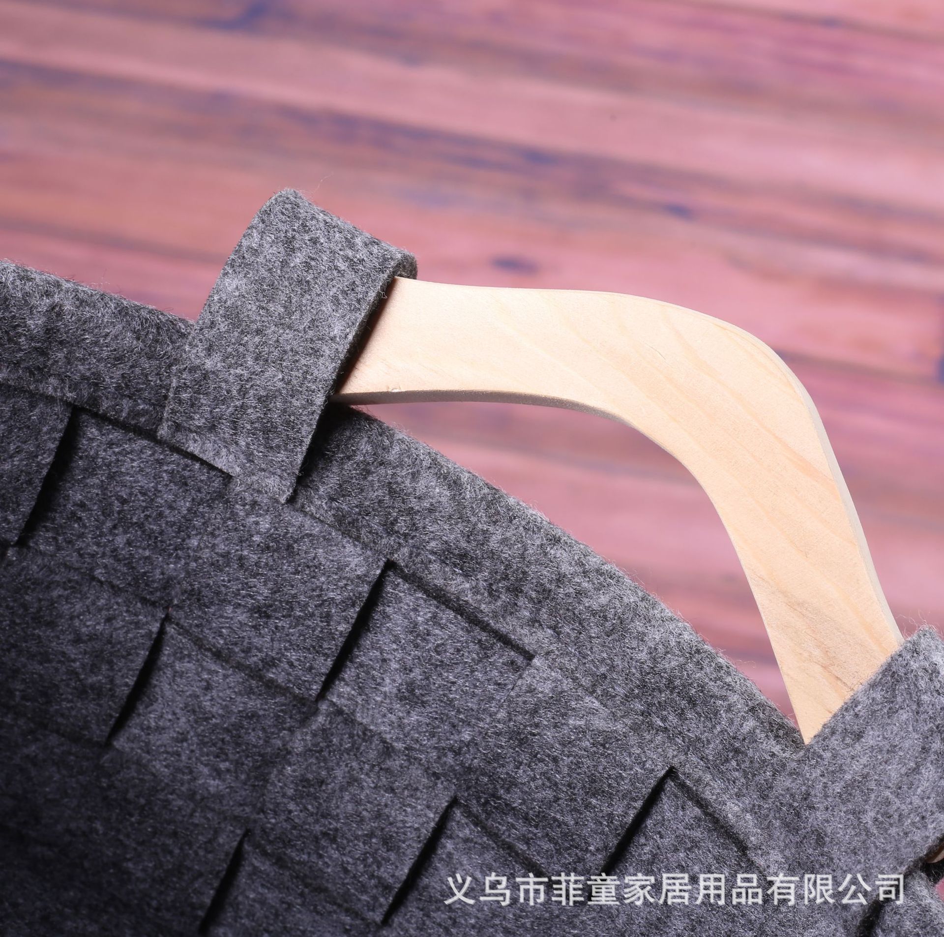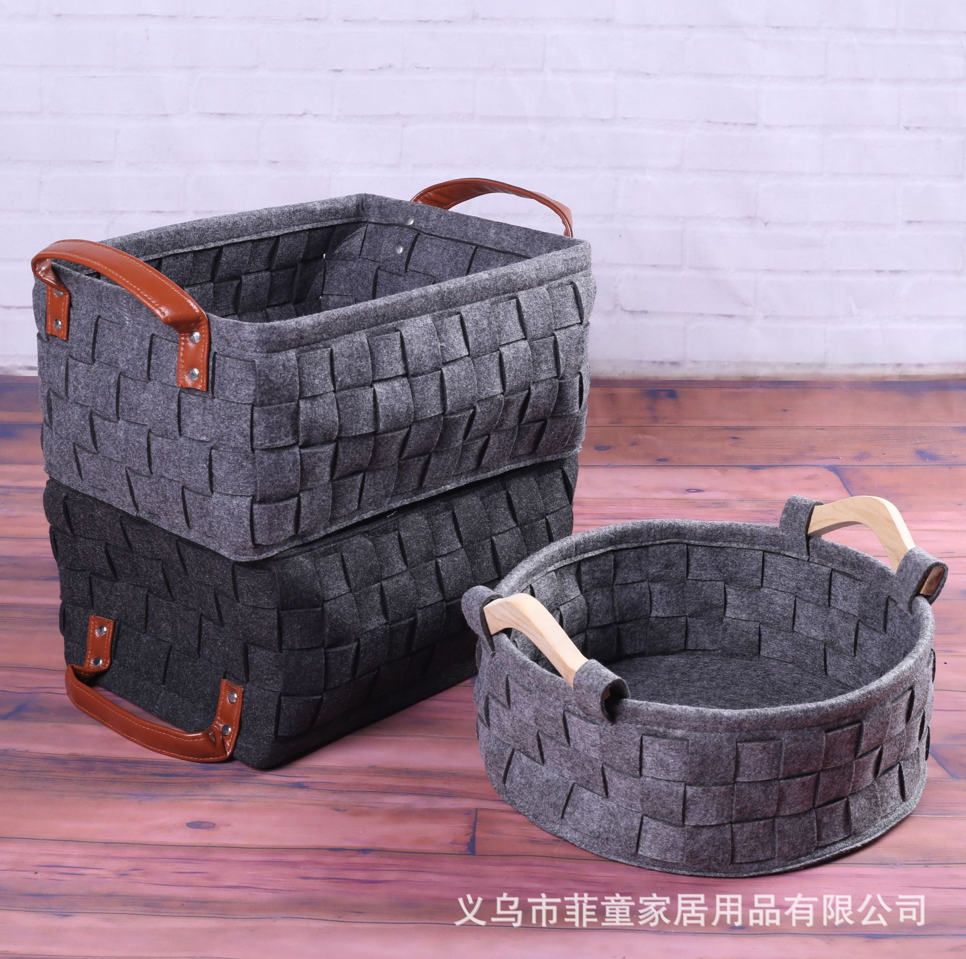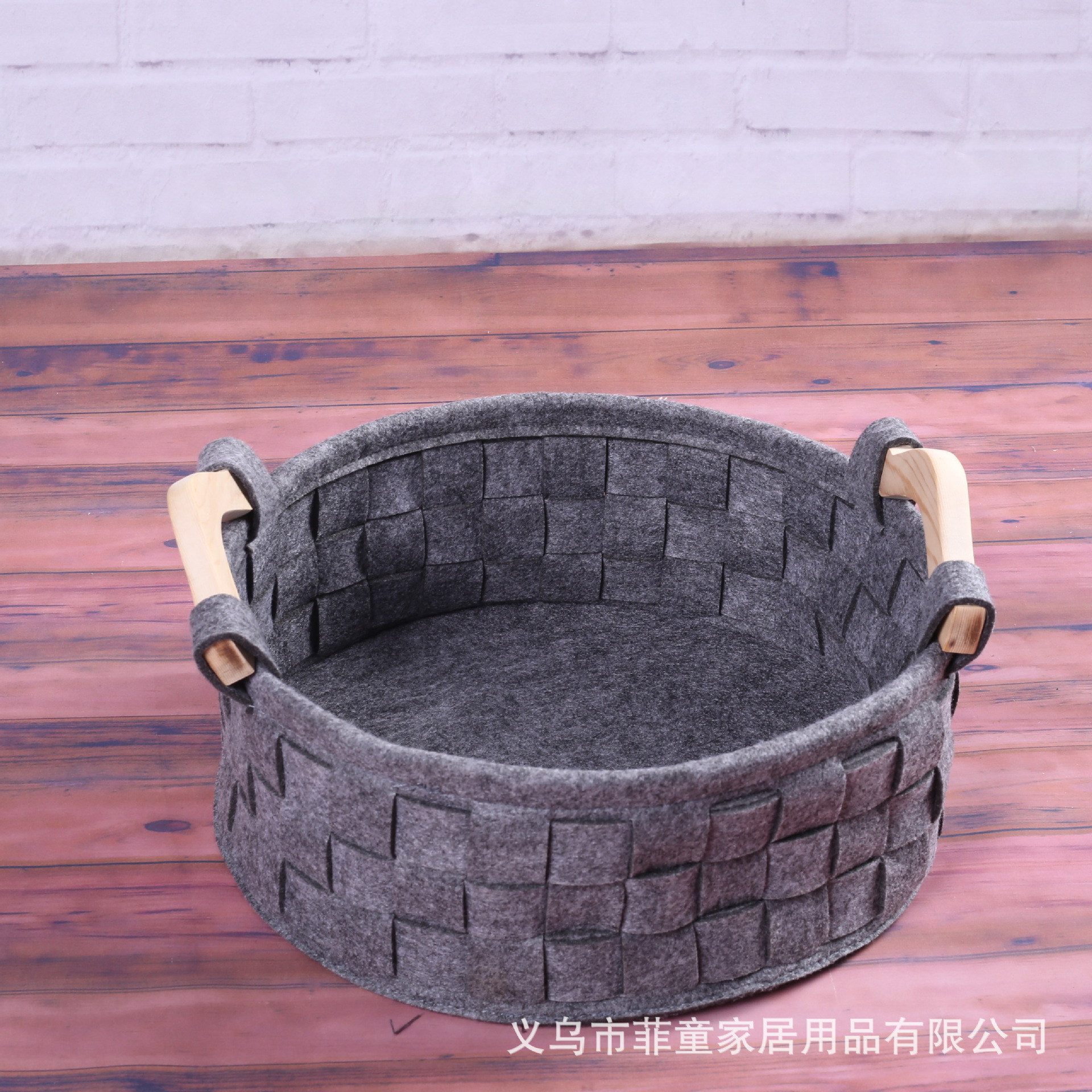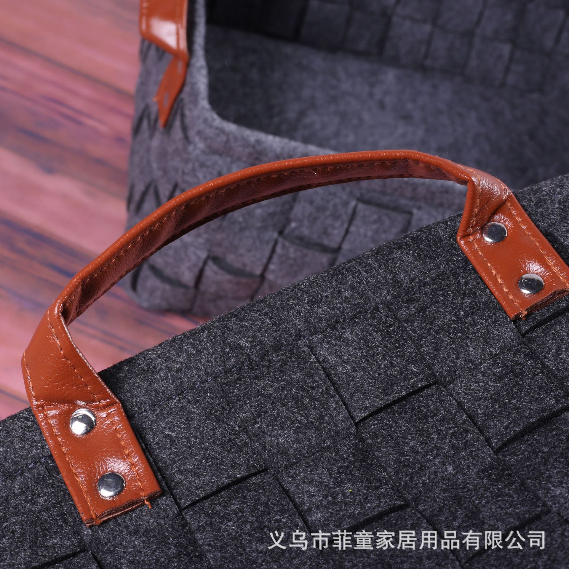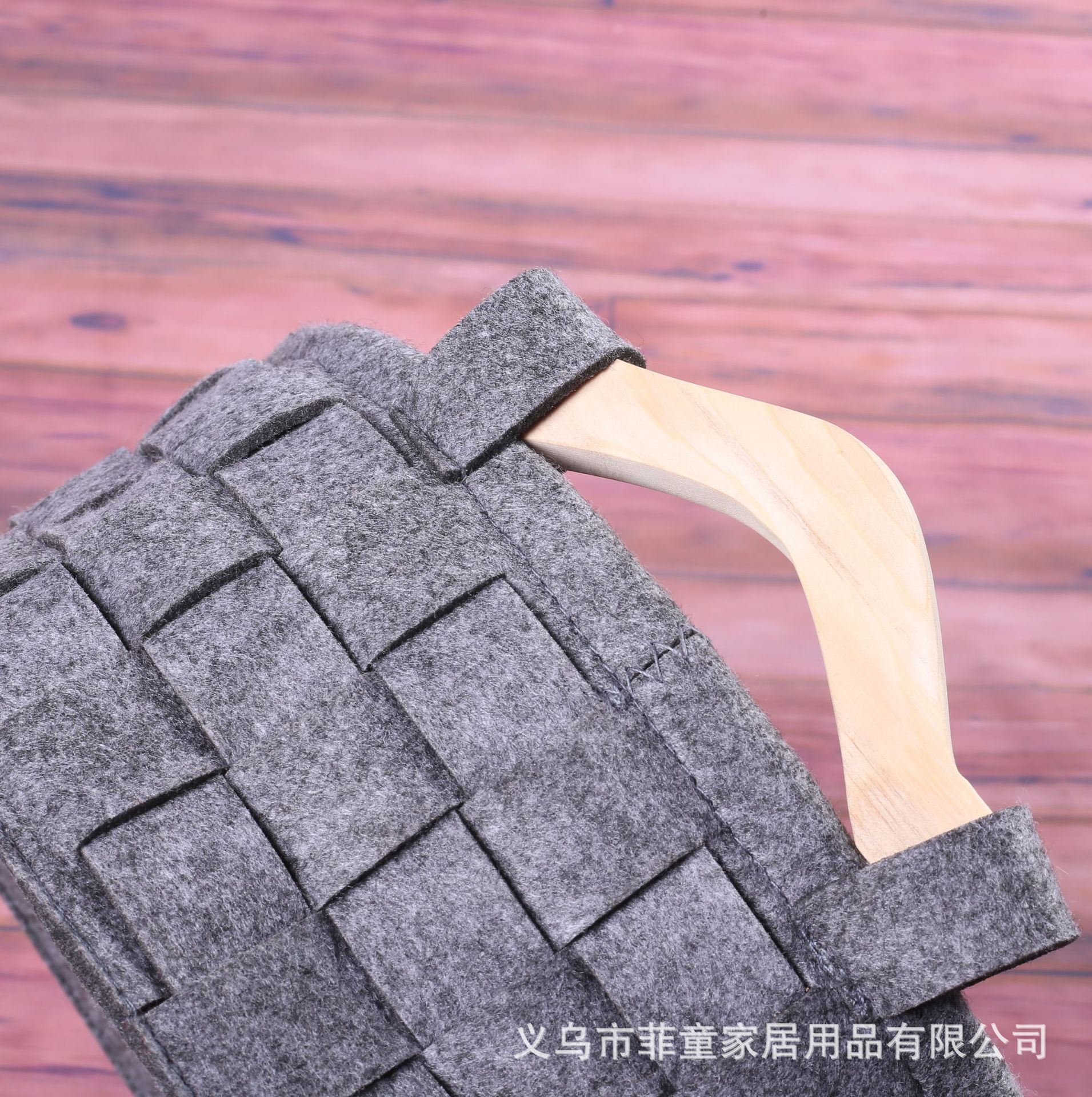 品名:环保毛毡编织木把手收纳筐手工拼接储物收纳篮