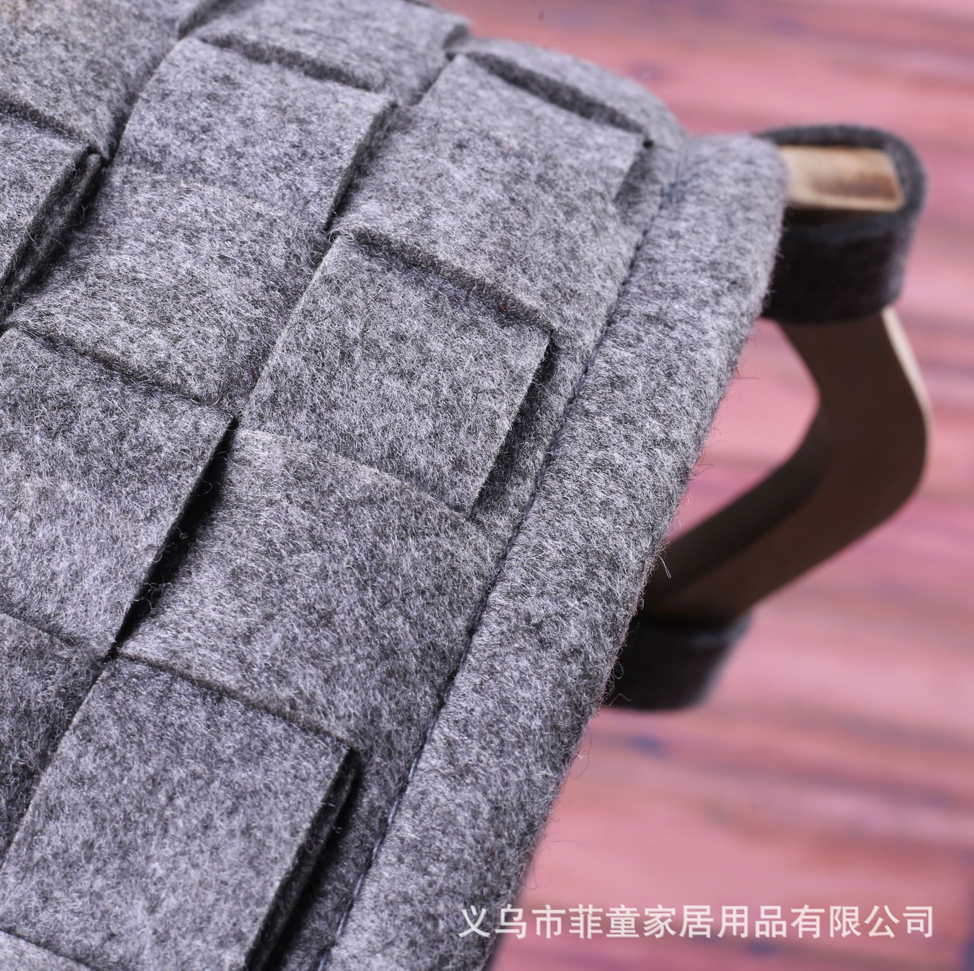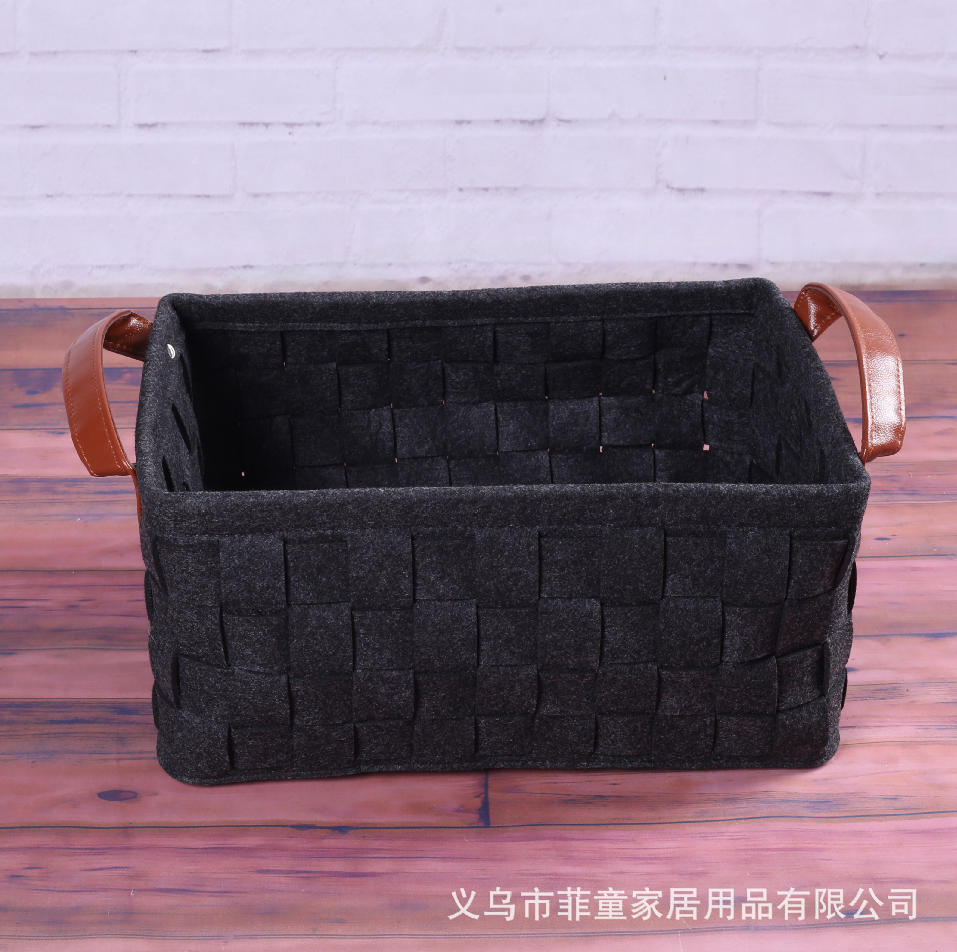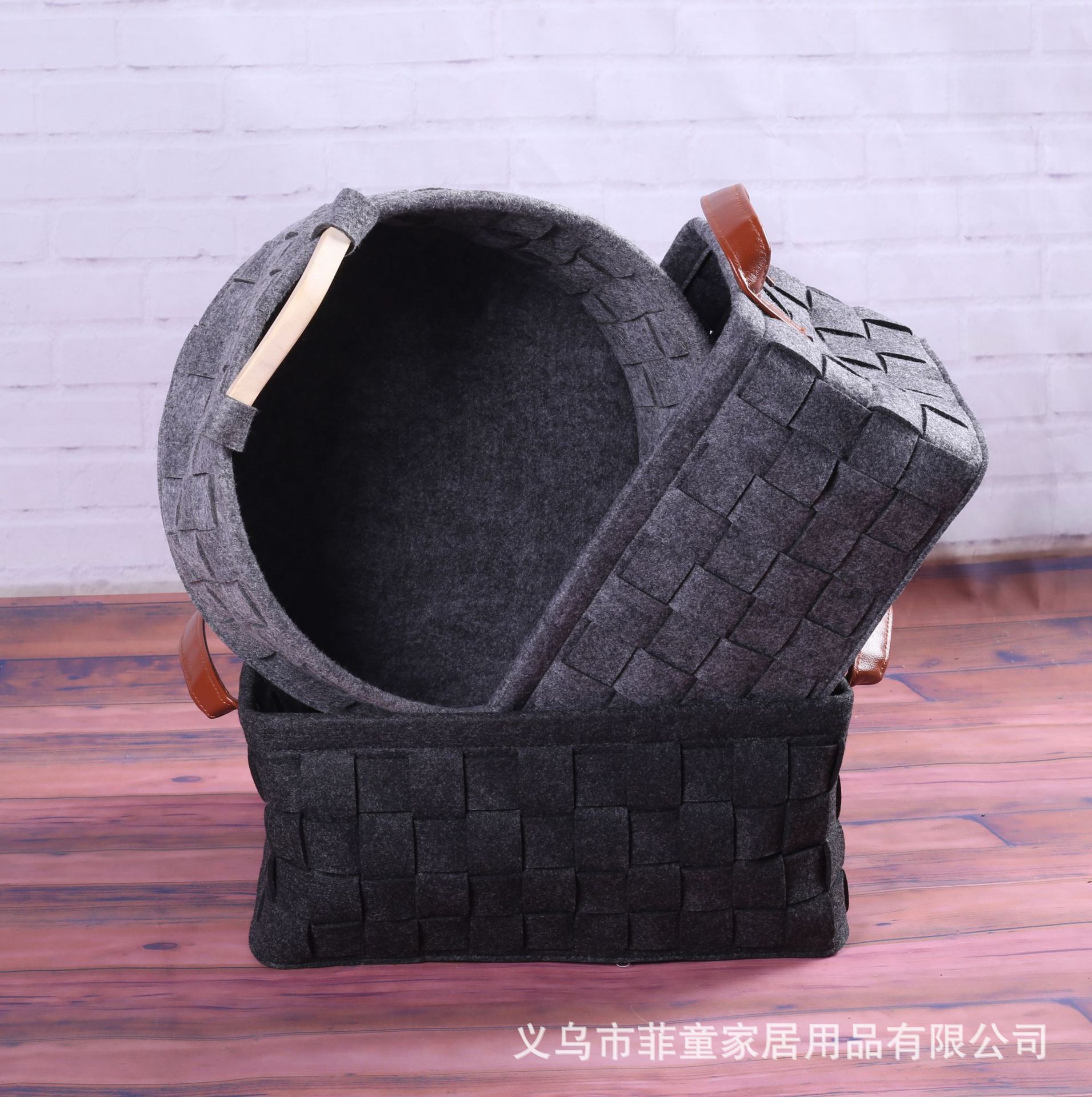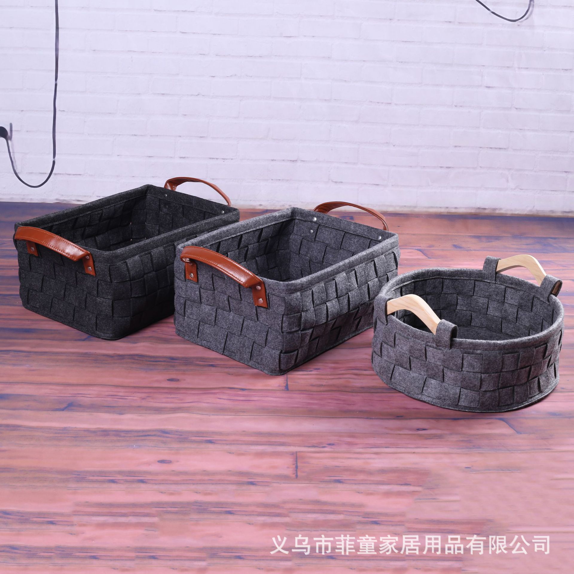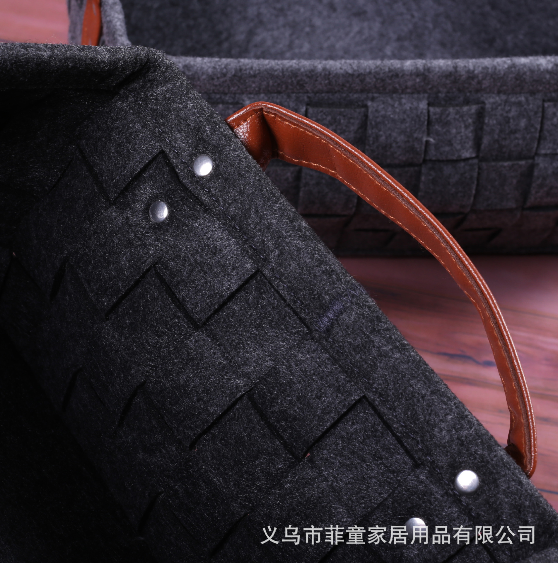 品名:环保毛毡编织木把手收纳筐手工拼接储物收纳篮