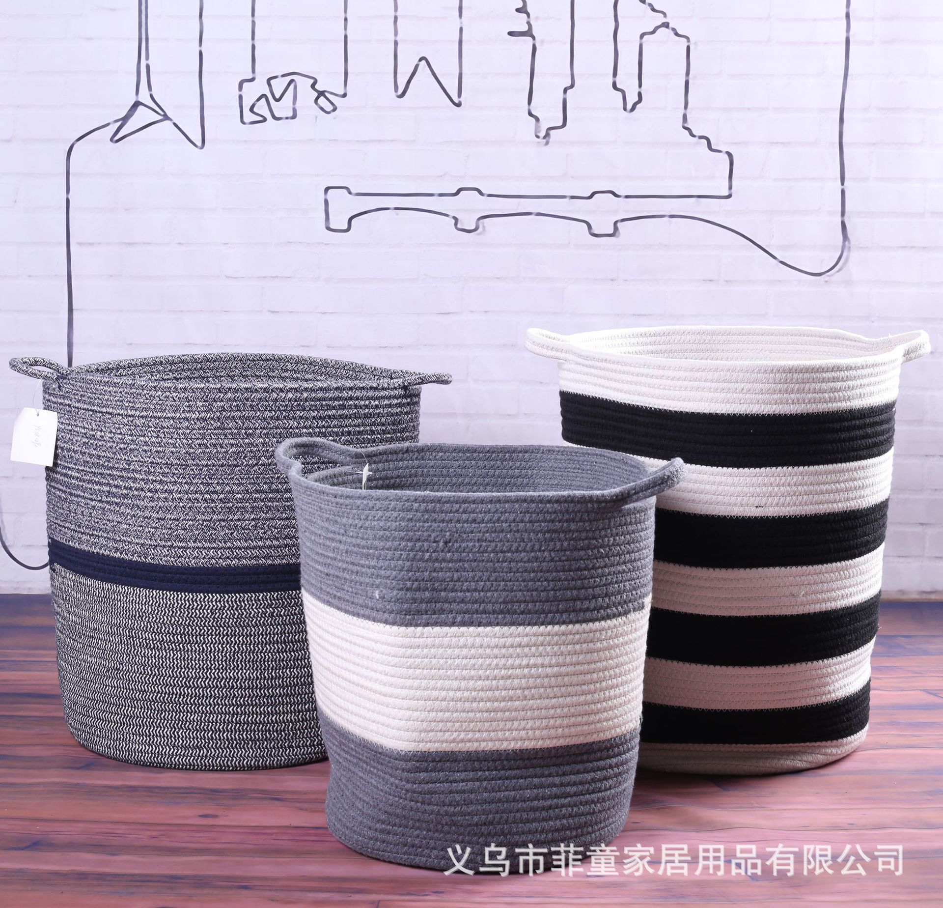 品名:手提收纳筐棉线编织收纳篮居家整理收纳桶