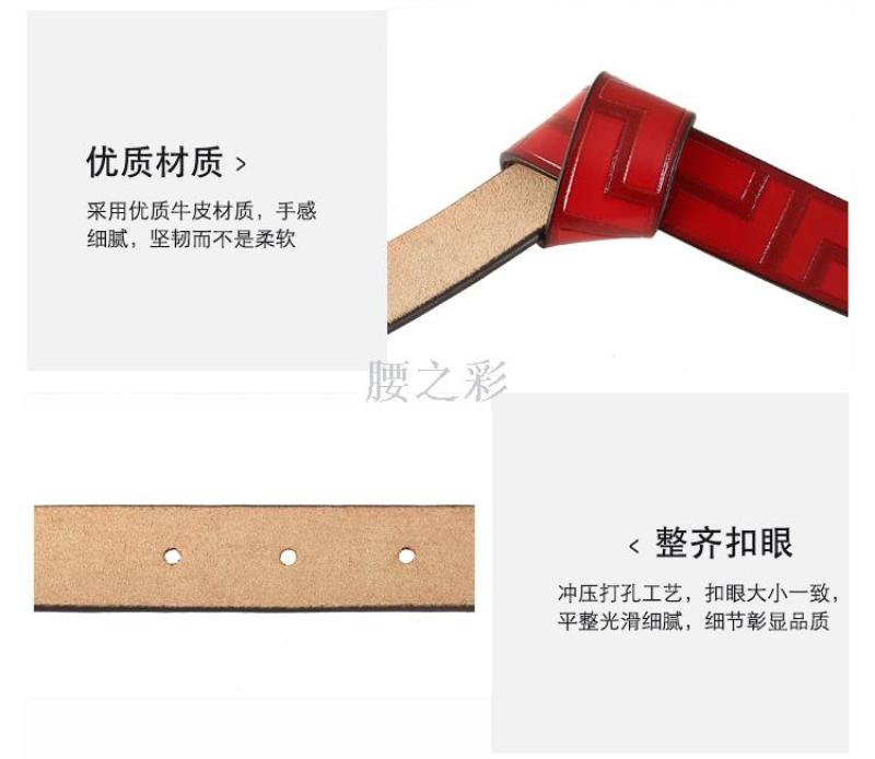 扣合方式: 针扣 适用性别: 女 皮质特征: 牛皮 腰带扣材质: 合金 宽度: 普通款(2-4cm) 流行元素: 压花 重量: 1.0 kg/条