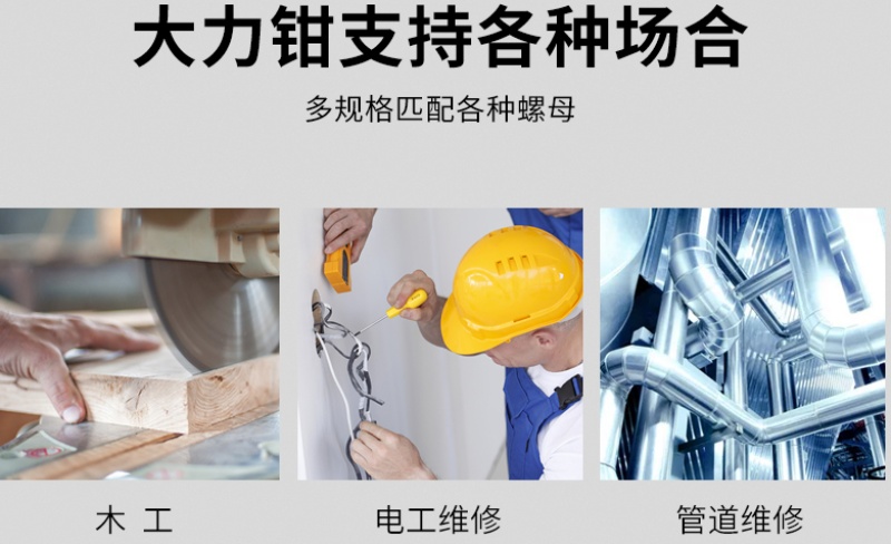 品牌:worksite 尺寸:圆口/方口大力钳 颜色:黑黄 装箱数:48/40pcs 质保期限:1年