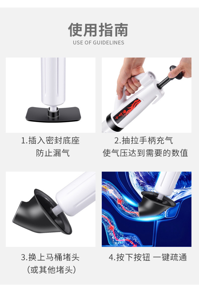 马桶疏通器捅厕所下水道工具吸管道堵塞一炮通高压气厨房家用神器 投诉