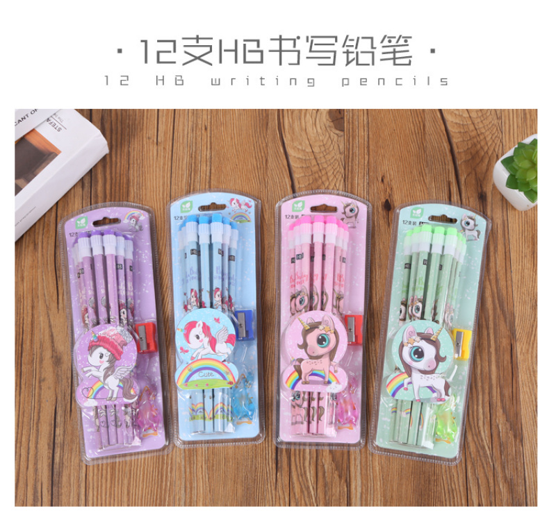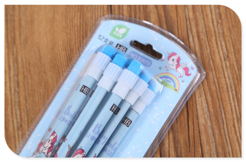 产品名称:十二支装圆杆HB儿童小学生无毒考试带橡皮擦头铅笔 颜色款式多样