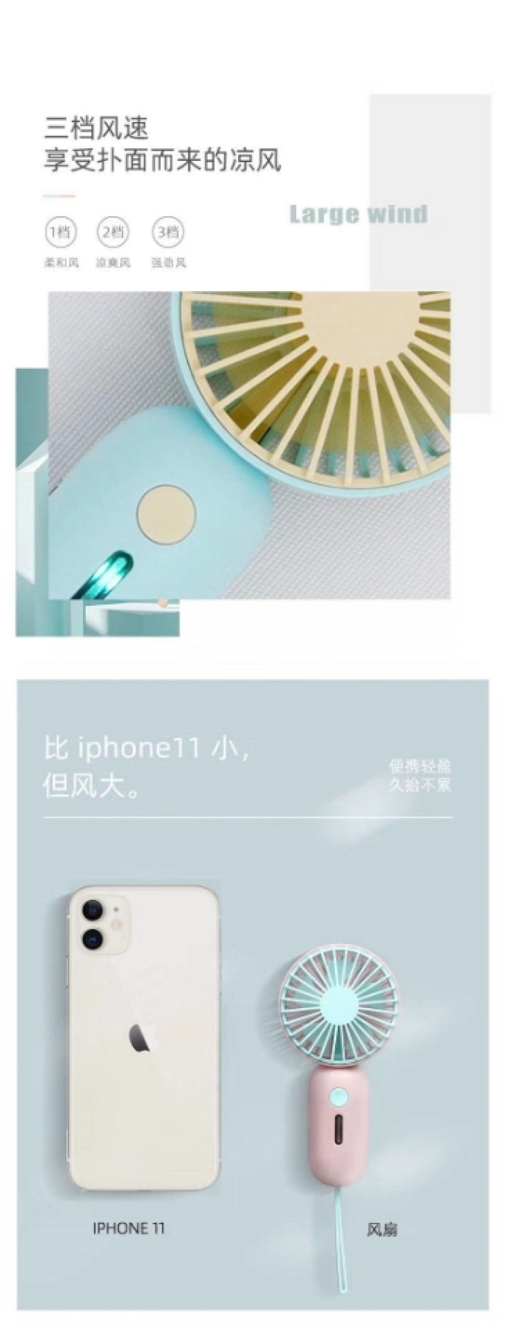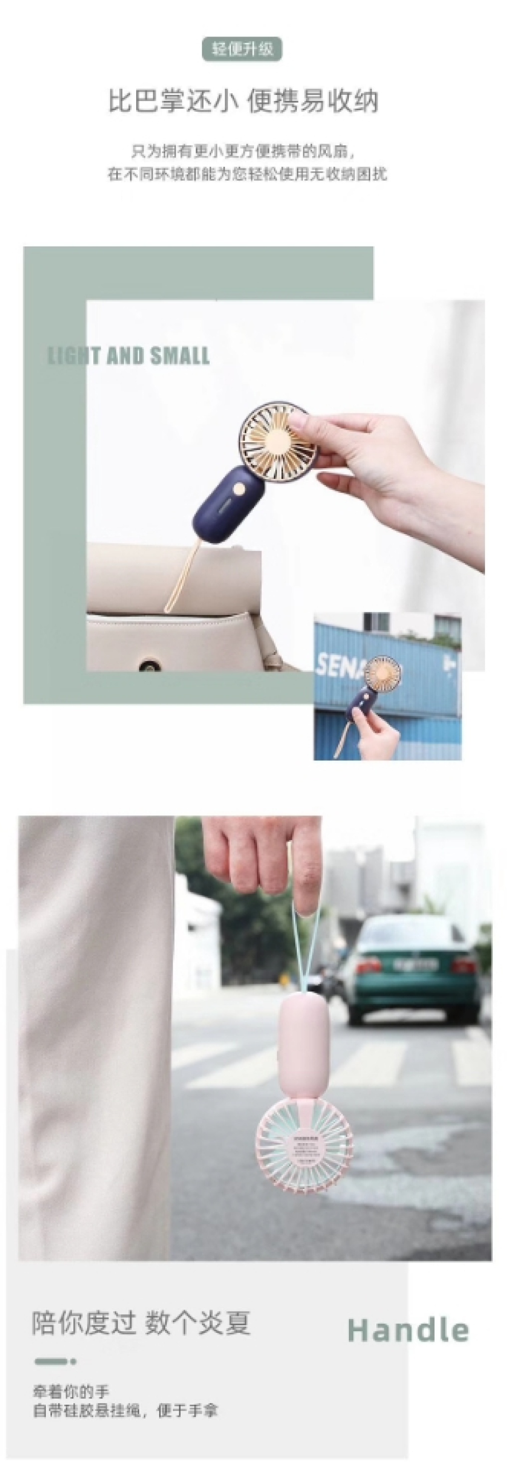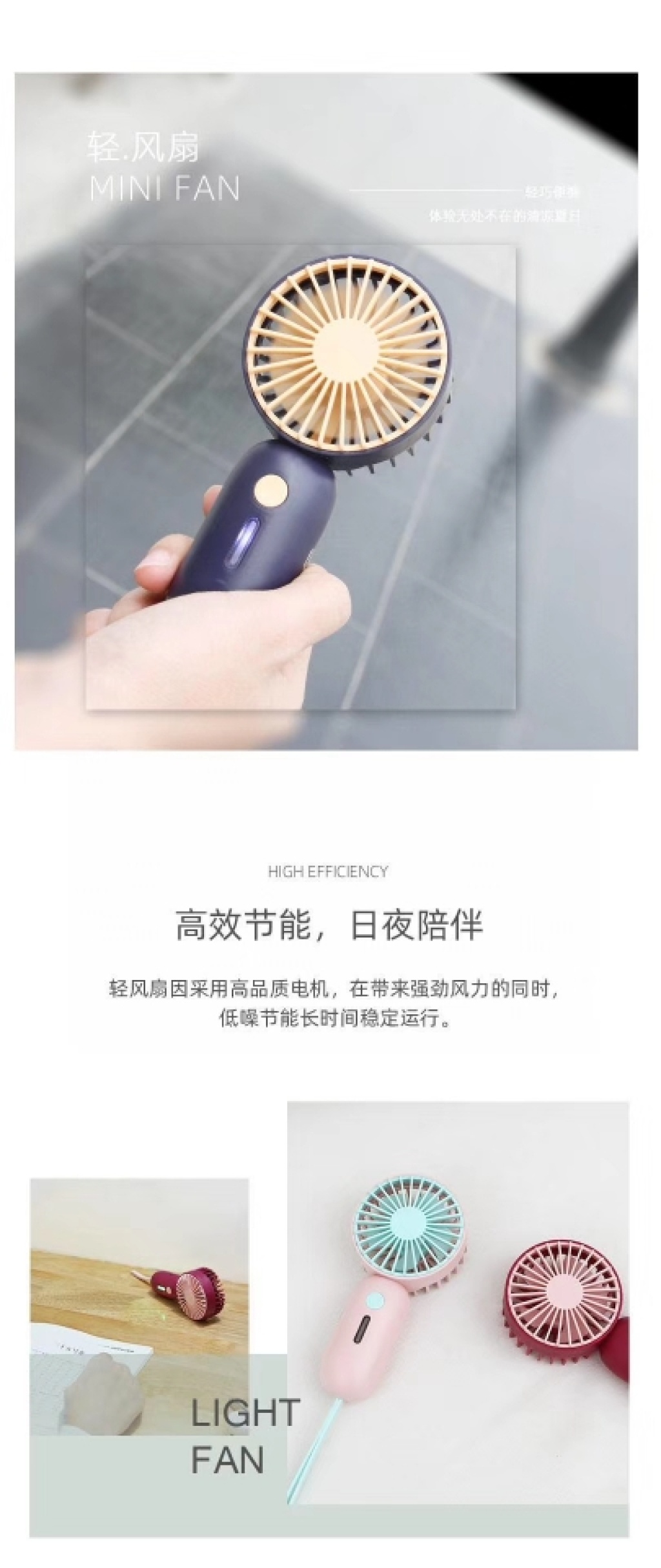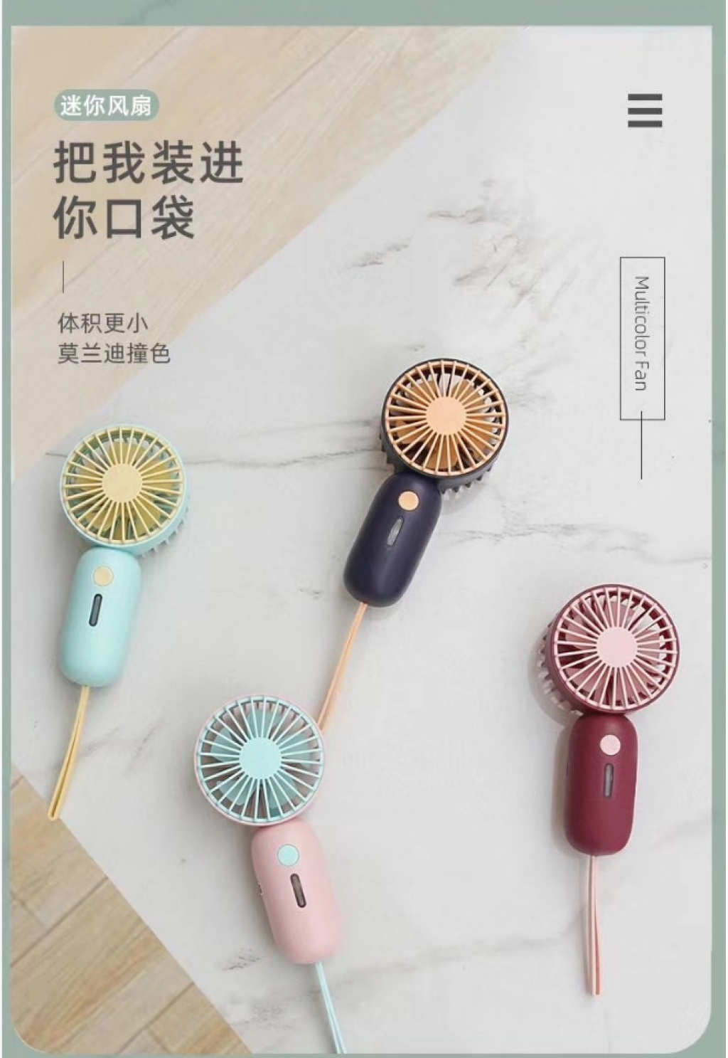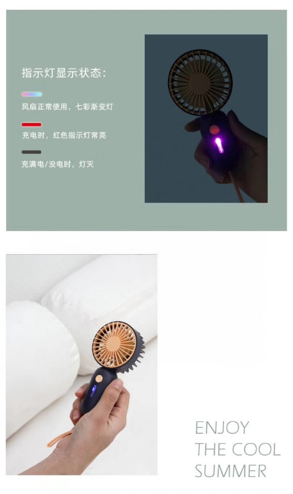 迷你风扇USB风扇便携式风扇桌面风扇收纳型风扇七彩渐变灯手持风扇