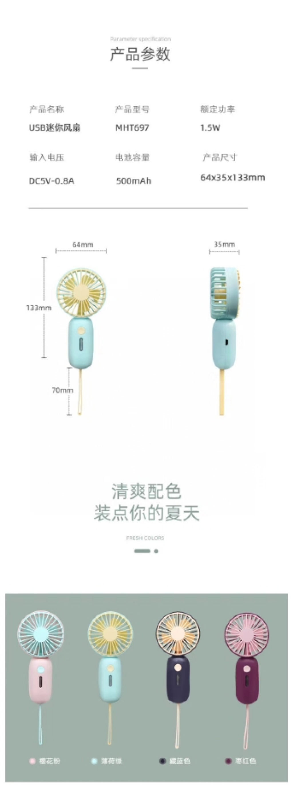 『产品名称』USB充电风扇(4色)
