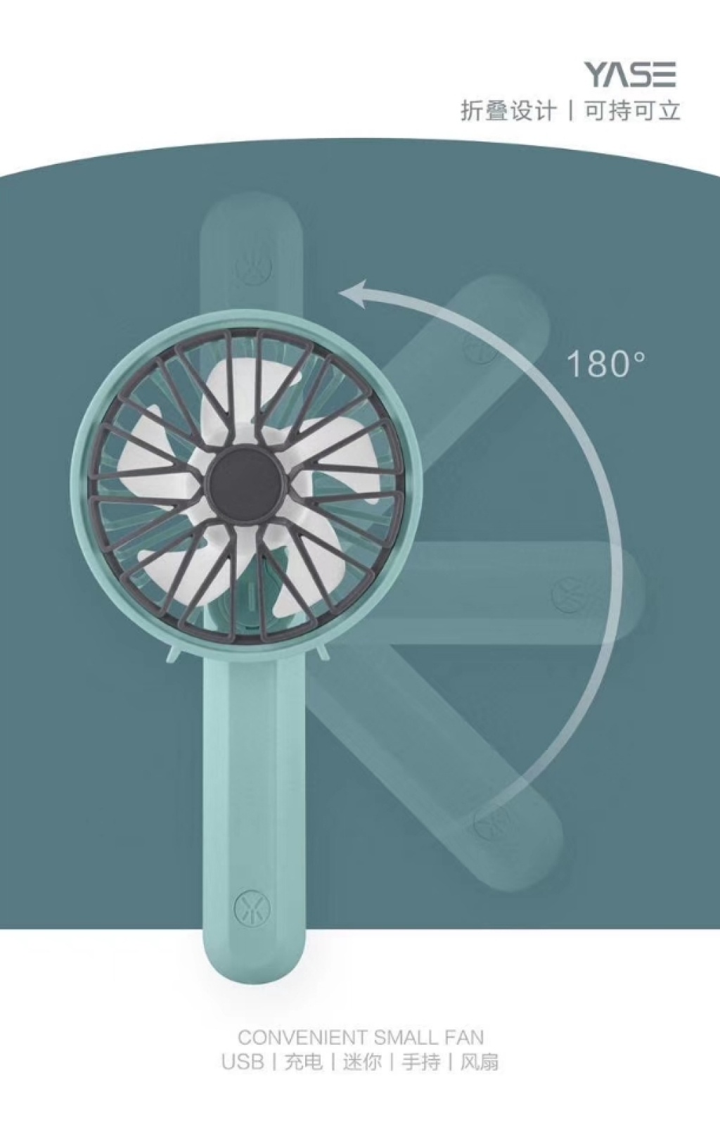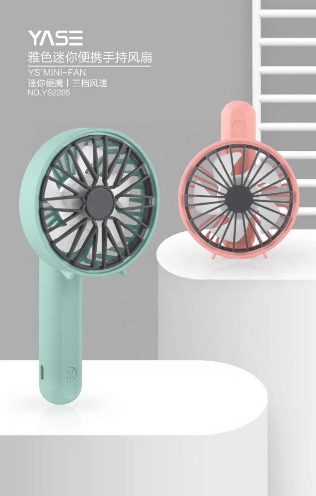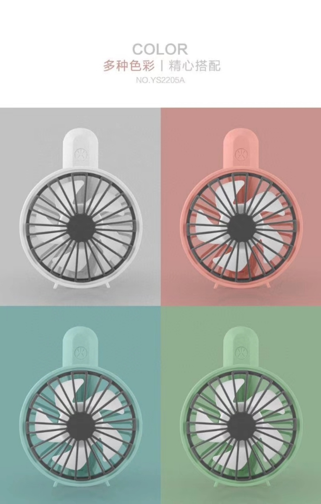 『产品名称』雪花网罩旋转手持充电风扇(4色)