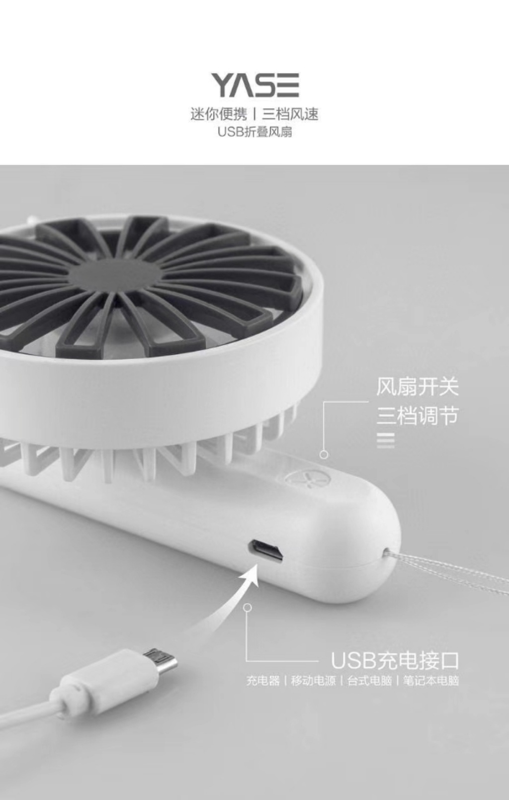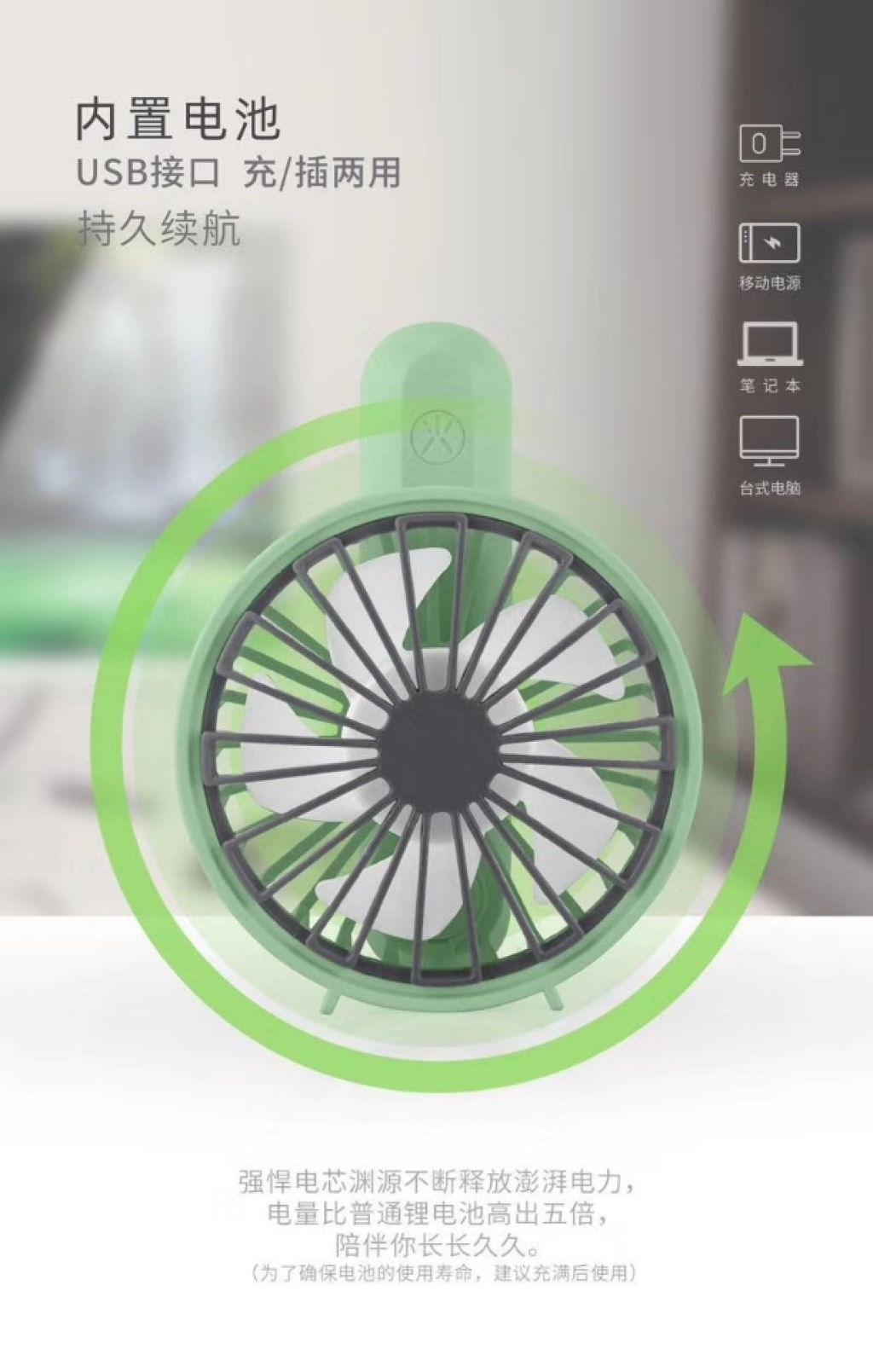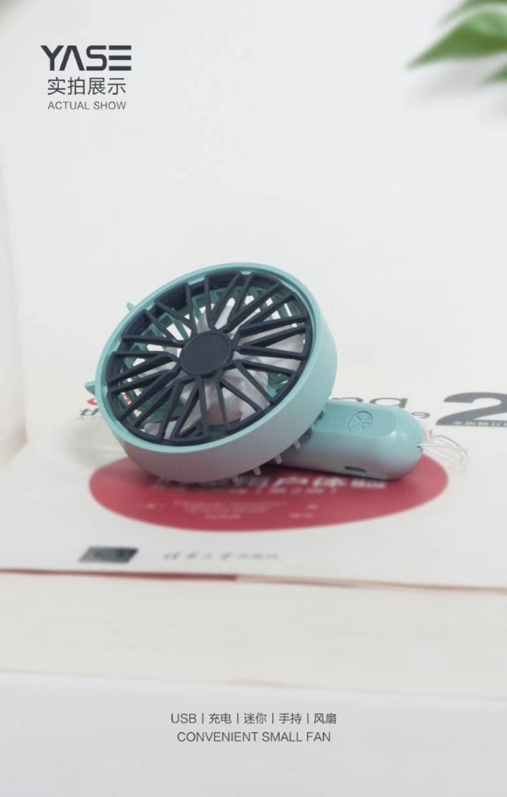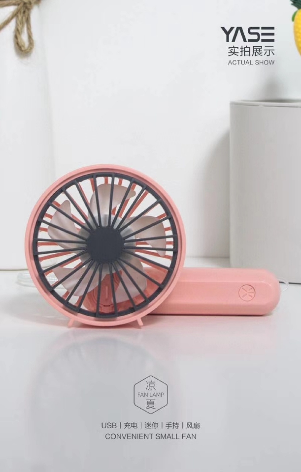 『产品名称』雪花网罩旋转手持充电风扇(4色)
