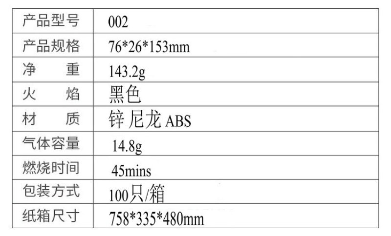 8.火头方向严禁朝向脸部,皮肤,衣物等可燃物质,以免发生危险