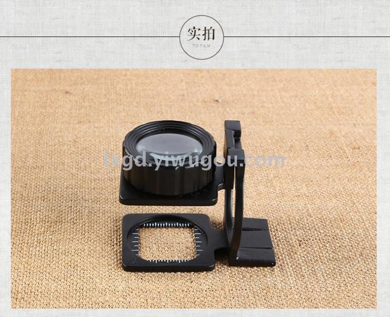 F03SZ光学10倍全金属折叠高清光学放大镜读数双层照布镜带刻度尺