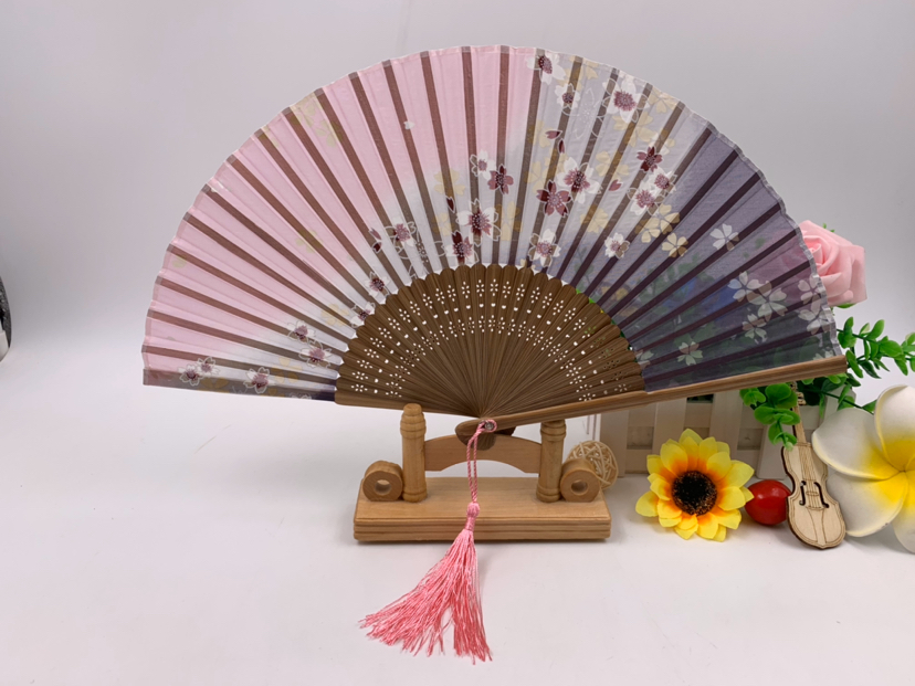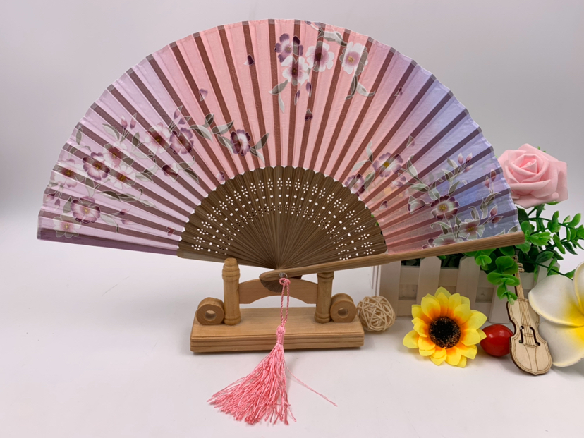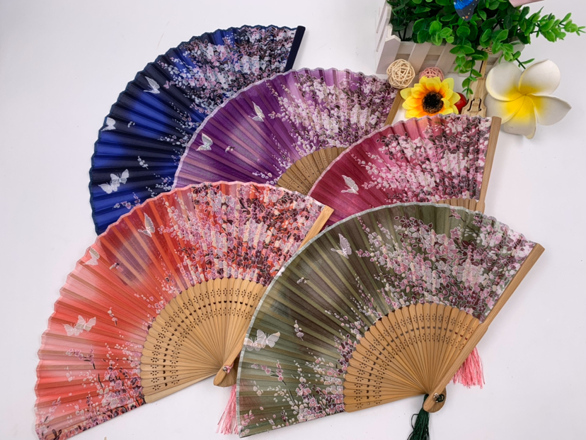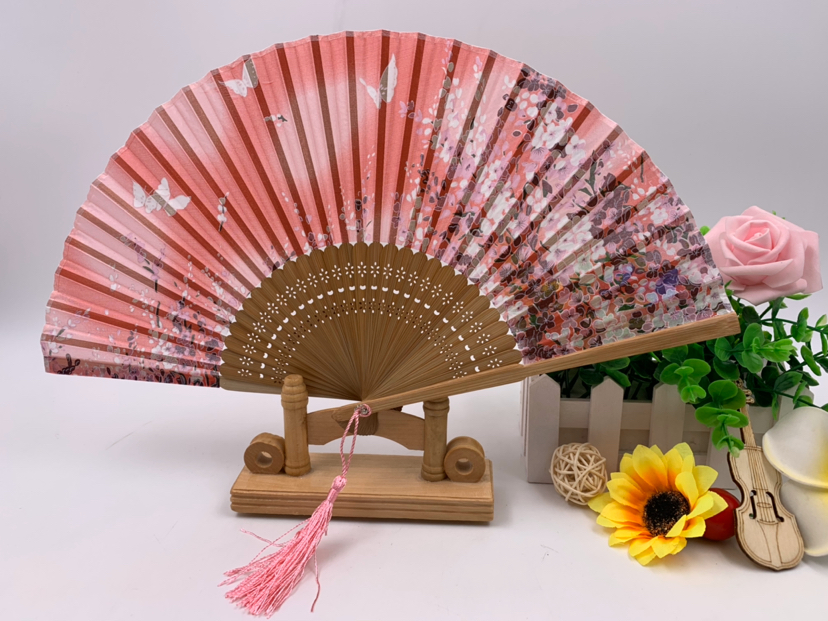 德祯真丝竹子折扇手绘古风丝绸折扇镂空日式和风手工女式扇子