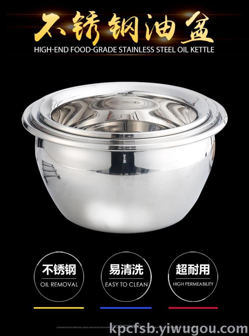不锈钢油盆学校食堂大号油鼓幼儿园厨房油桶调料味盅猪油盆加厚打蛋盆商用装油缸带盖