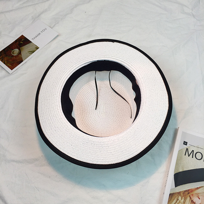 春夏韩版小礼帽子女复古草帽蝴蝶结白色平顶遮太阳防晒沙滩帽子潮 English | 投诉