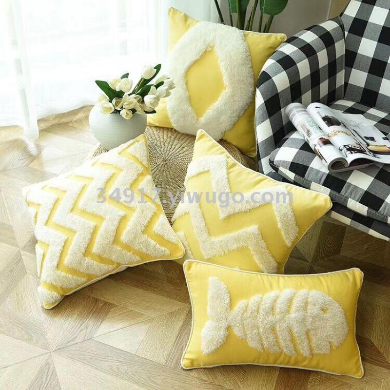 簇绒抱枕加厚亚麻布艺抱枕广告靠枕套腰枕简约靠背