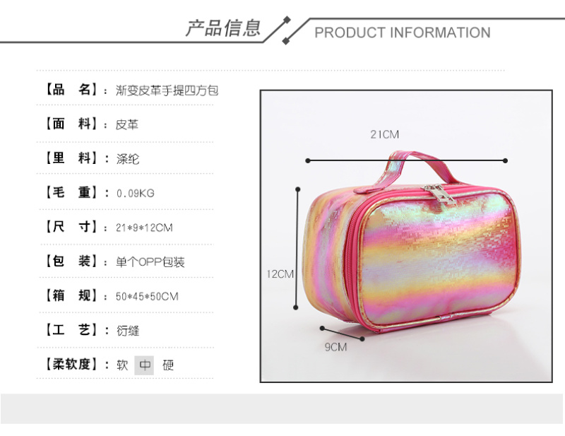 欧美爆款渐变皮革四方手提包防水收纳包定制logo厂家直销 投诉