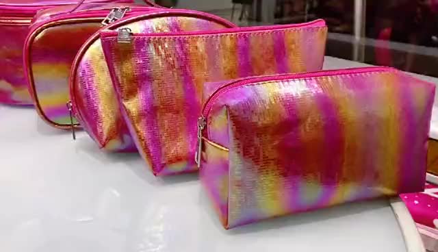 欧美爆款渐变皮革四方手提包防水收纳包定制logo厂家直销