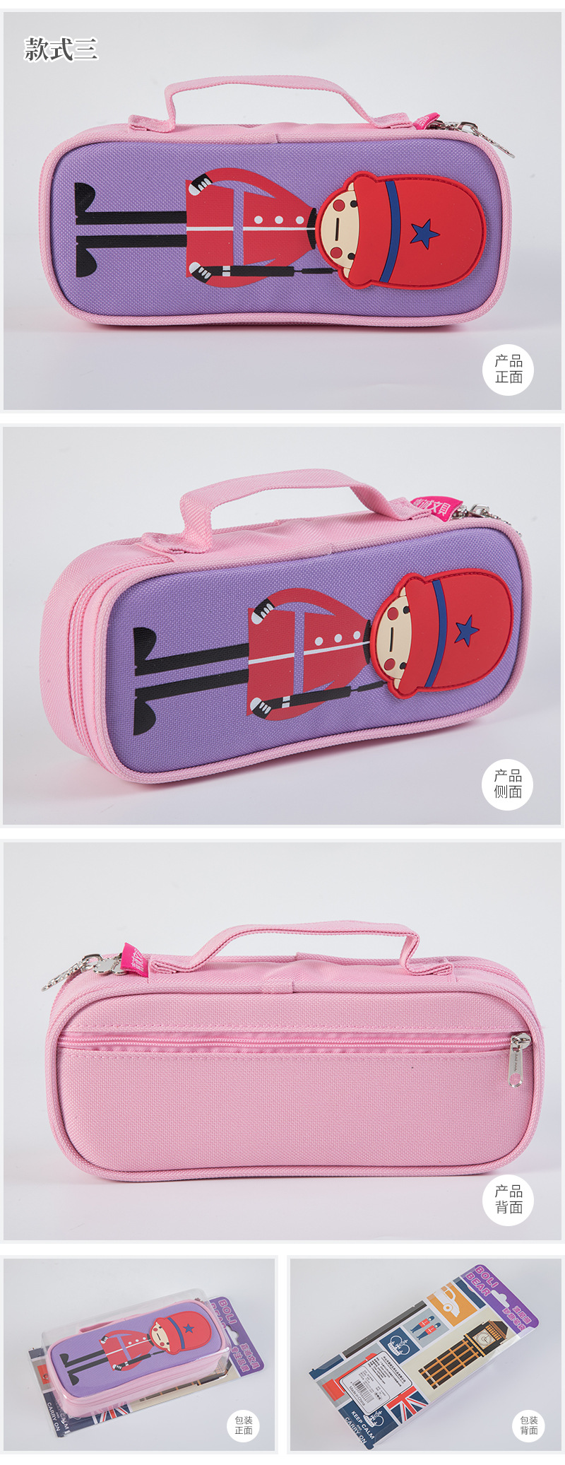 嘉诚笔袋款英伦小士兵男女款糖果色手挽笔袋中小学生收纳铅笔袋 投诉