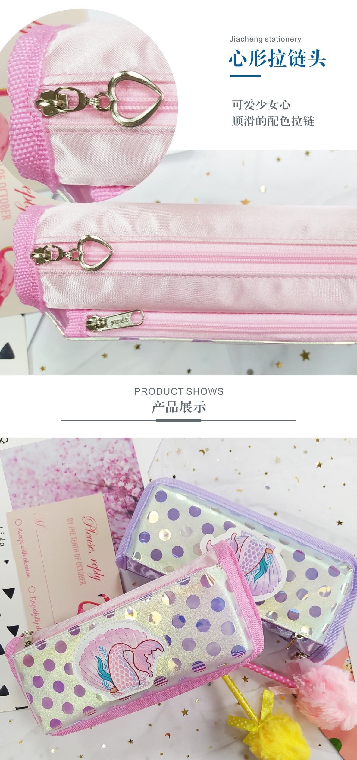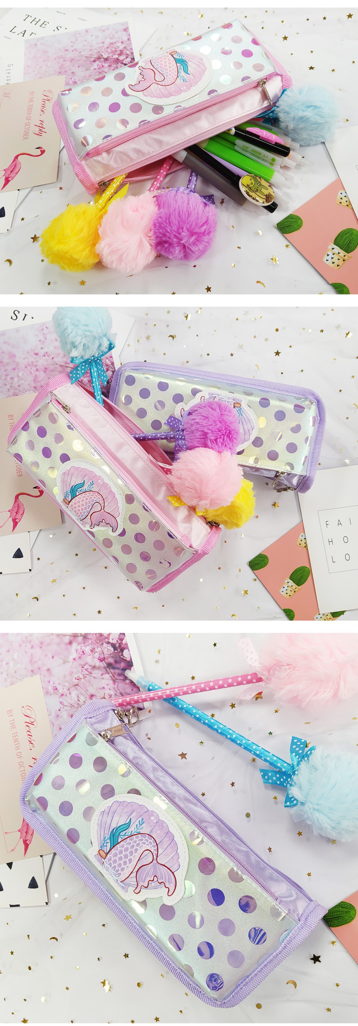 嘉诚文具韩风时尚美人鱼幻彩膜女款笔袋大容量多层中小学生笔袋
