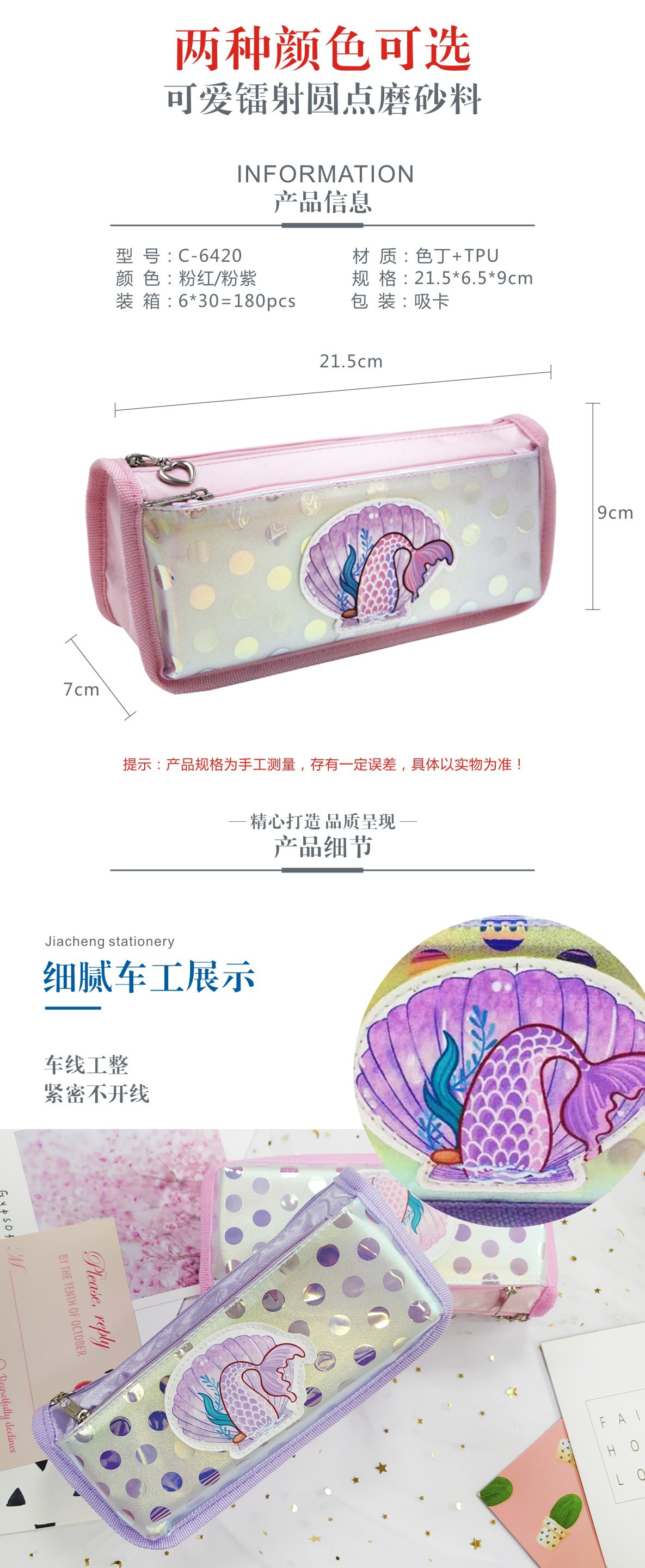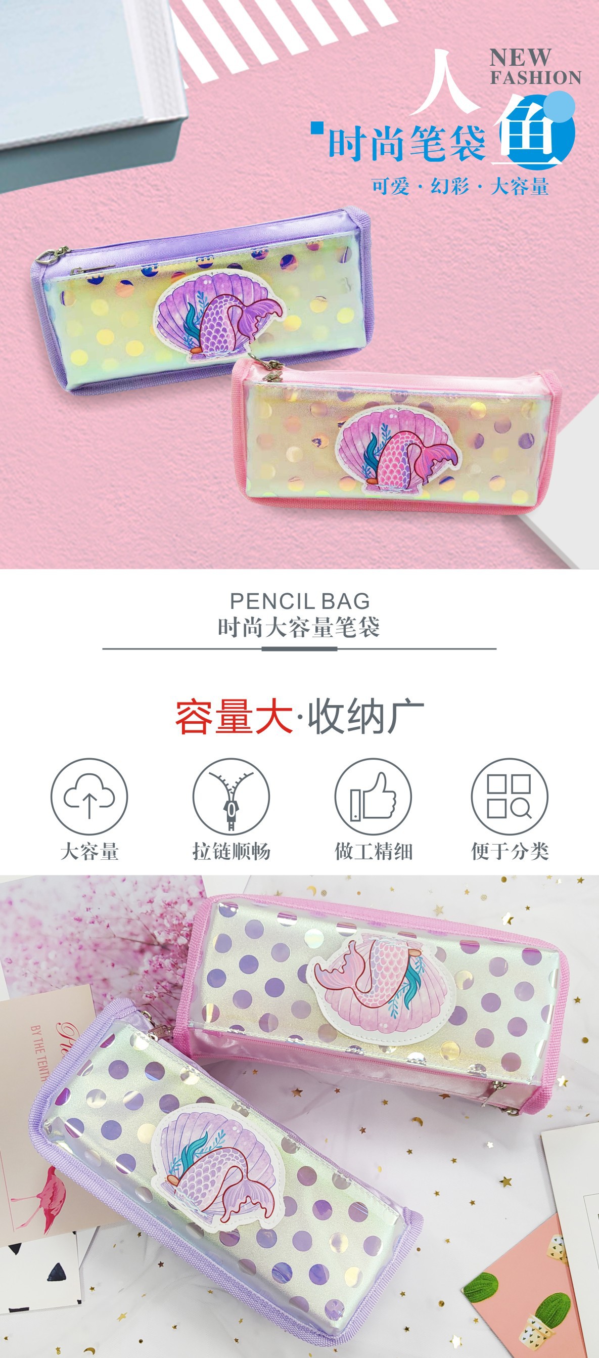嘉诚文具韩风时尚美人鱼幻彩膜女款笔袋大容量多层中小学生笔袋 投诉