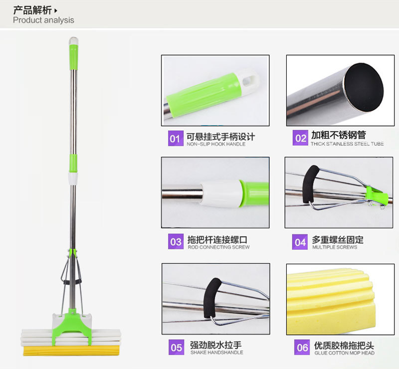 1、伸缩杆身,采用抱锁结构设计,左松右紧,确保了拖把杆的可靠性,并可根据使用者的要求随意调整杆的长度(70-125CM)。轻轻松松打扫卫生死角。