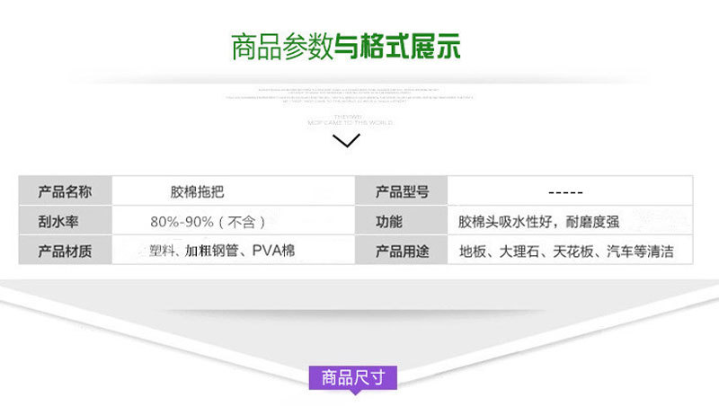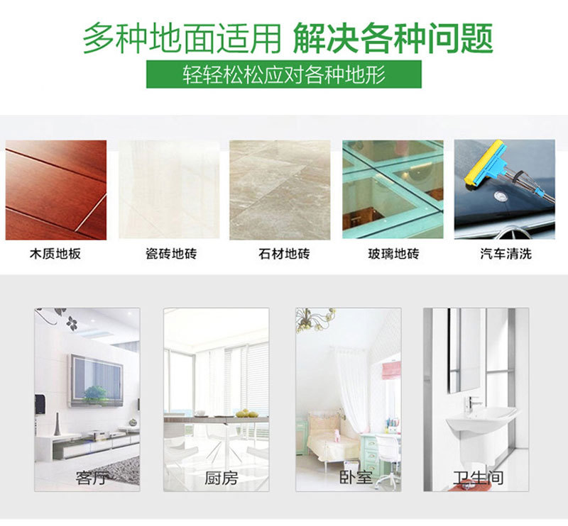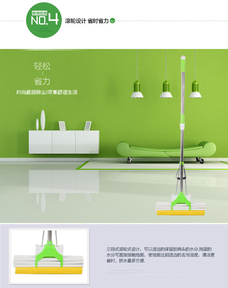 3、超细纤维拖把头采用体质超细纤维经高技术制造,专业除垢设计,彩色软性去污丝线绒,经久耐用,不掉毛絮,吸水性能特强。