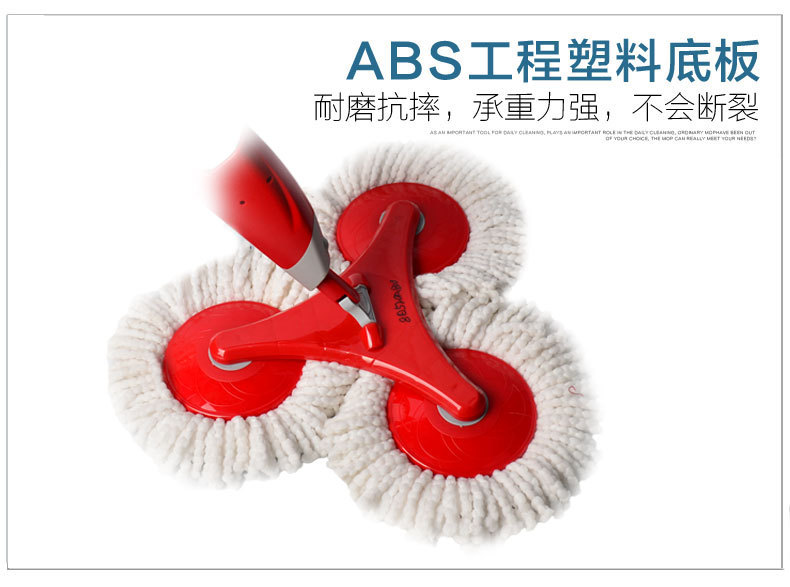 3、超细纤维拖把头采用体质超细纤维经高技术制造,专业除垢设计,彩色软性去污丝线绒,经久耐用,不掉毛絮,吸水性能特强。