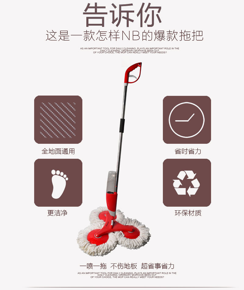 2,喷水设计,节约用水,又能达到迅速干燥的目的,即拖即干。