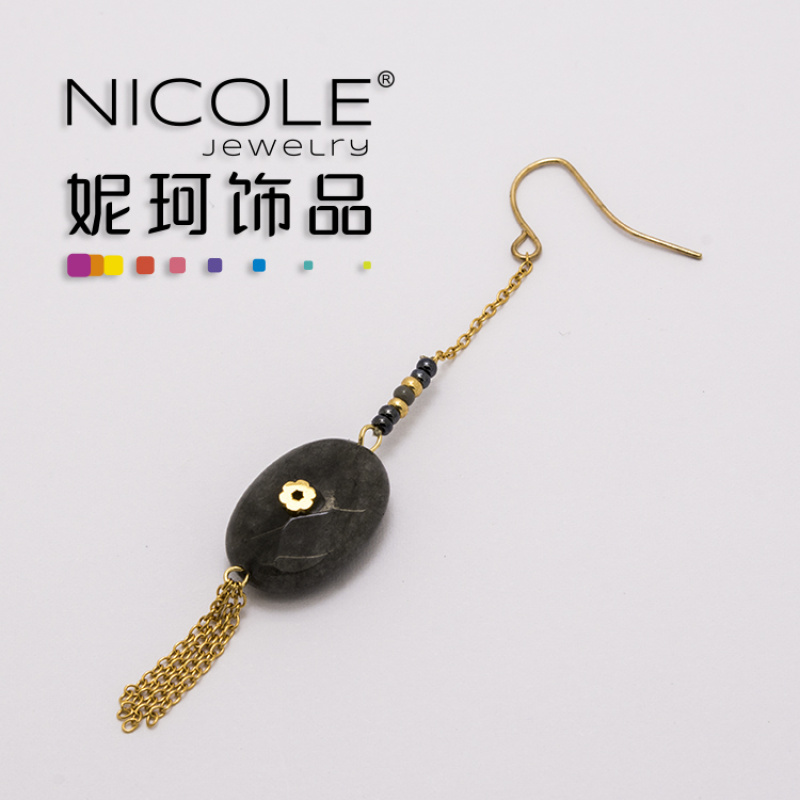 新款黑色天然石 日本进口米珠钛钢流苏链条 耳坠纯手工编织款耳环