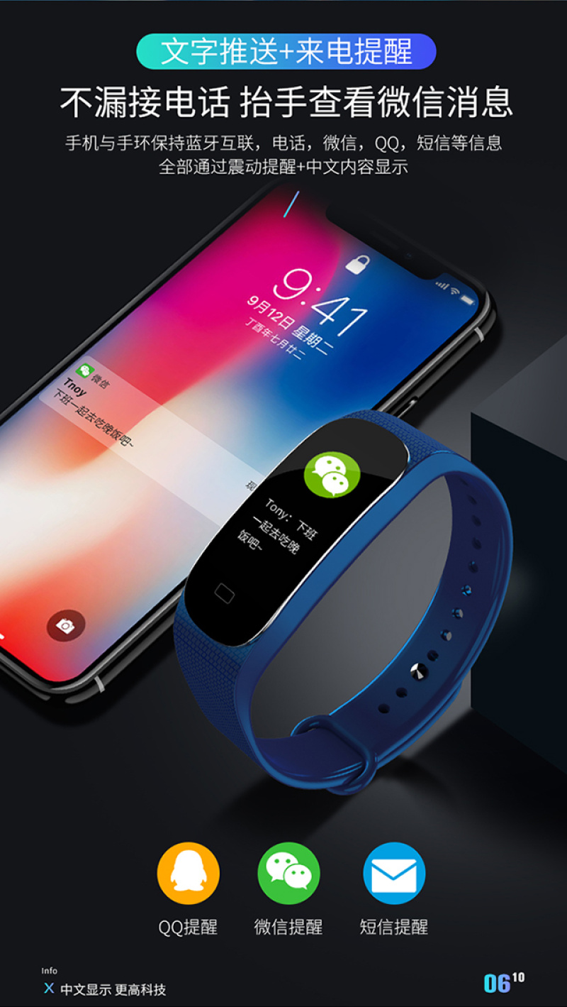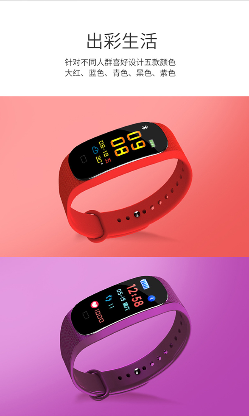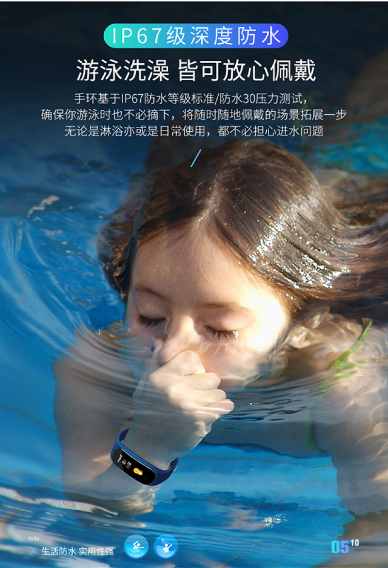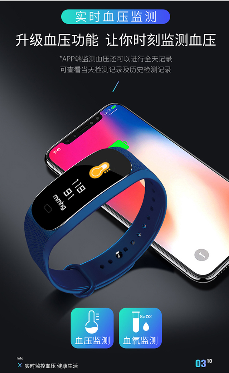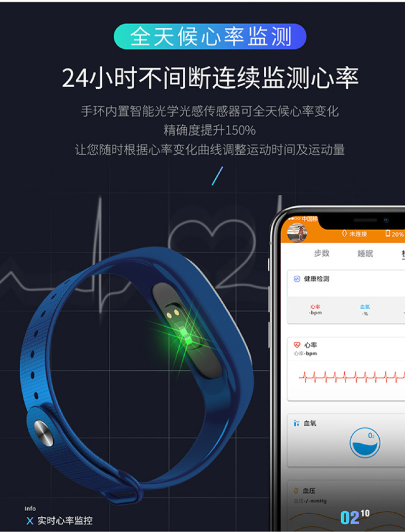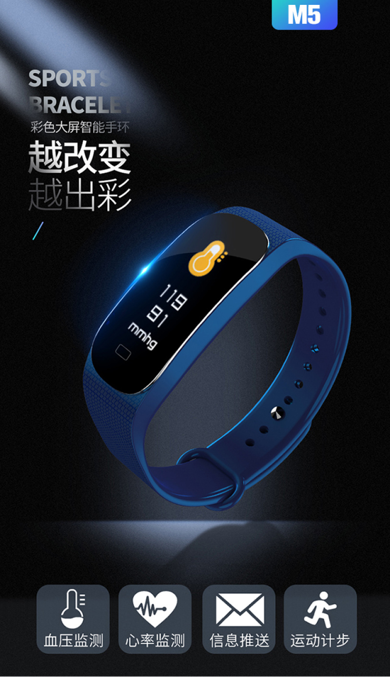 M5手环健康手环计步心率检测心率实时监控睡眠监控久坐提醒里程