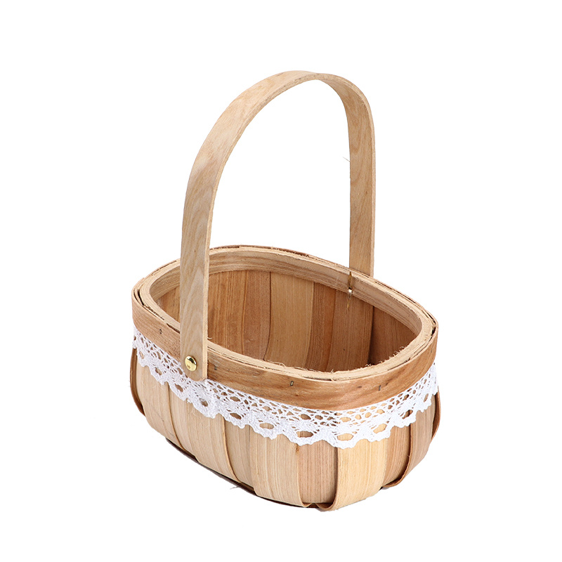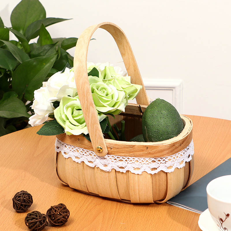 木片小花篮手提花篮椭圆形小花篮多肉绿植鲜花插花篮