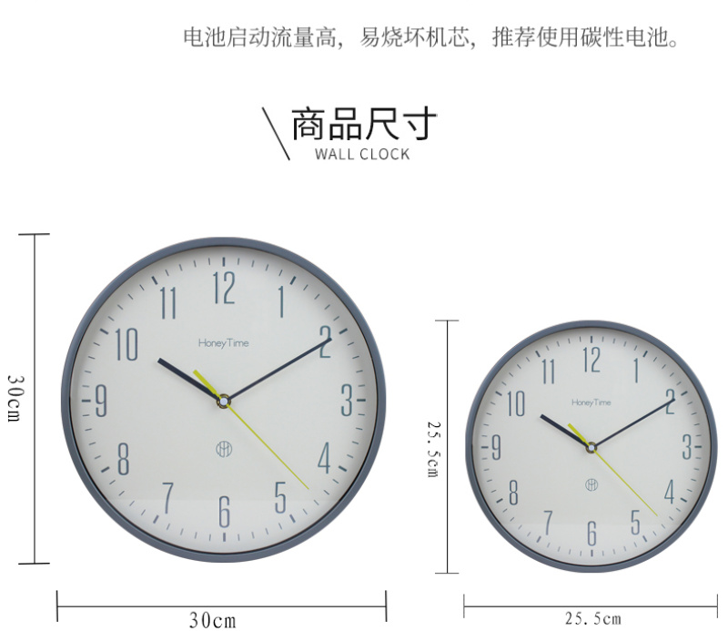简约时尚新款圆形10寸25.5cm挂钟 卧室客厅静音扫秒石英壁钟厂货 投诉