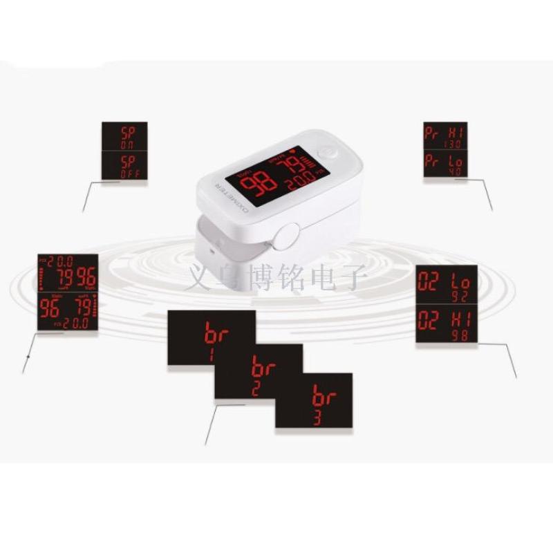 6,直接从显示屏读取相关数据,显示屏上可以显示血氧饱和度、脉率和脉搏幅度、PI灌注指数