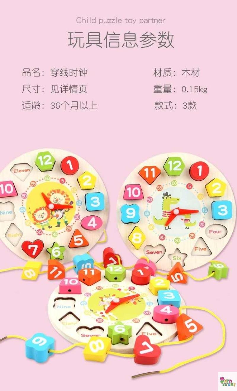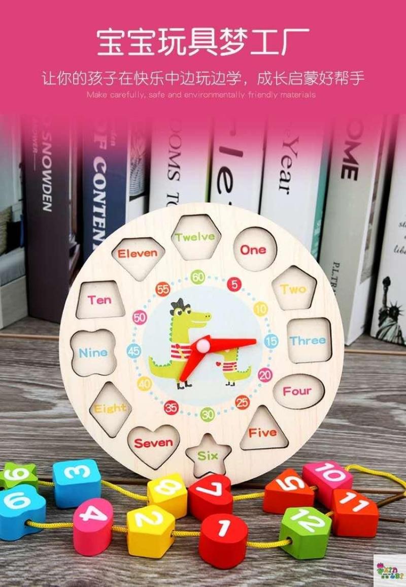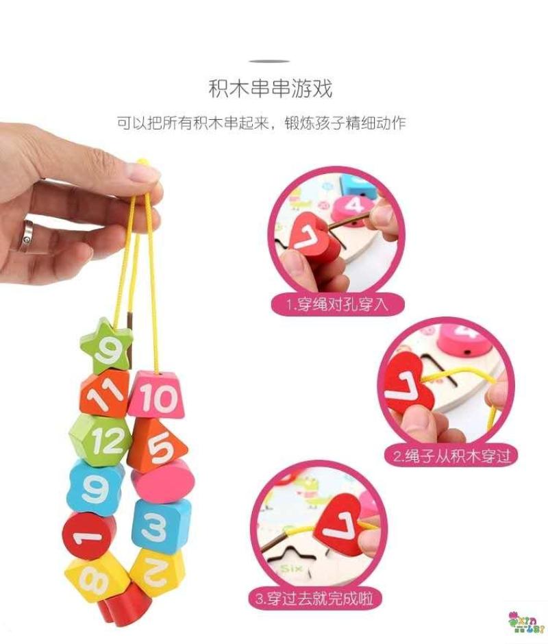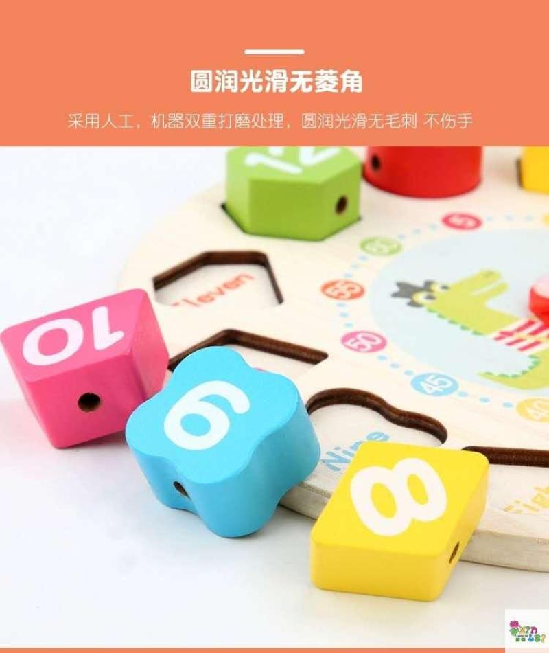 儿童数字时钟串珠积木早教益智形状配对穿珠拼图玩具 English | 投诉