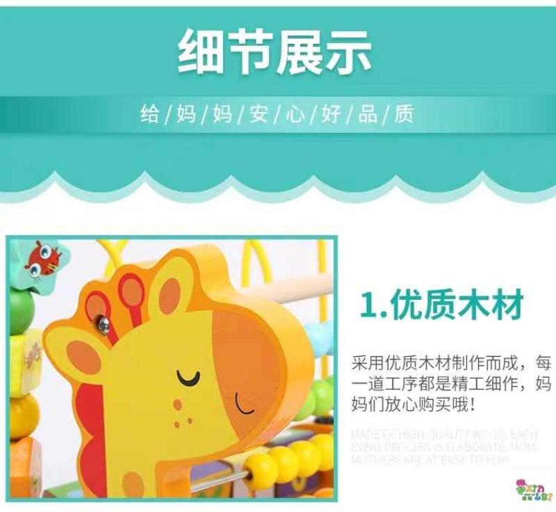 儿童早教启蒙益智木质玩具多功能宝宝绕珠计算架 English | 投诉