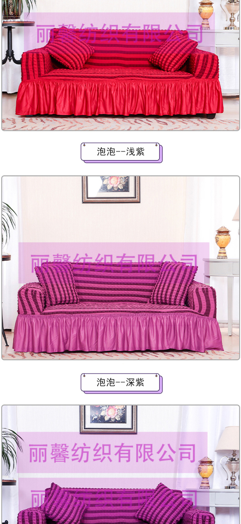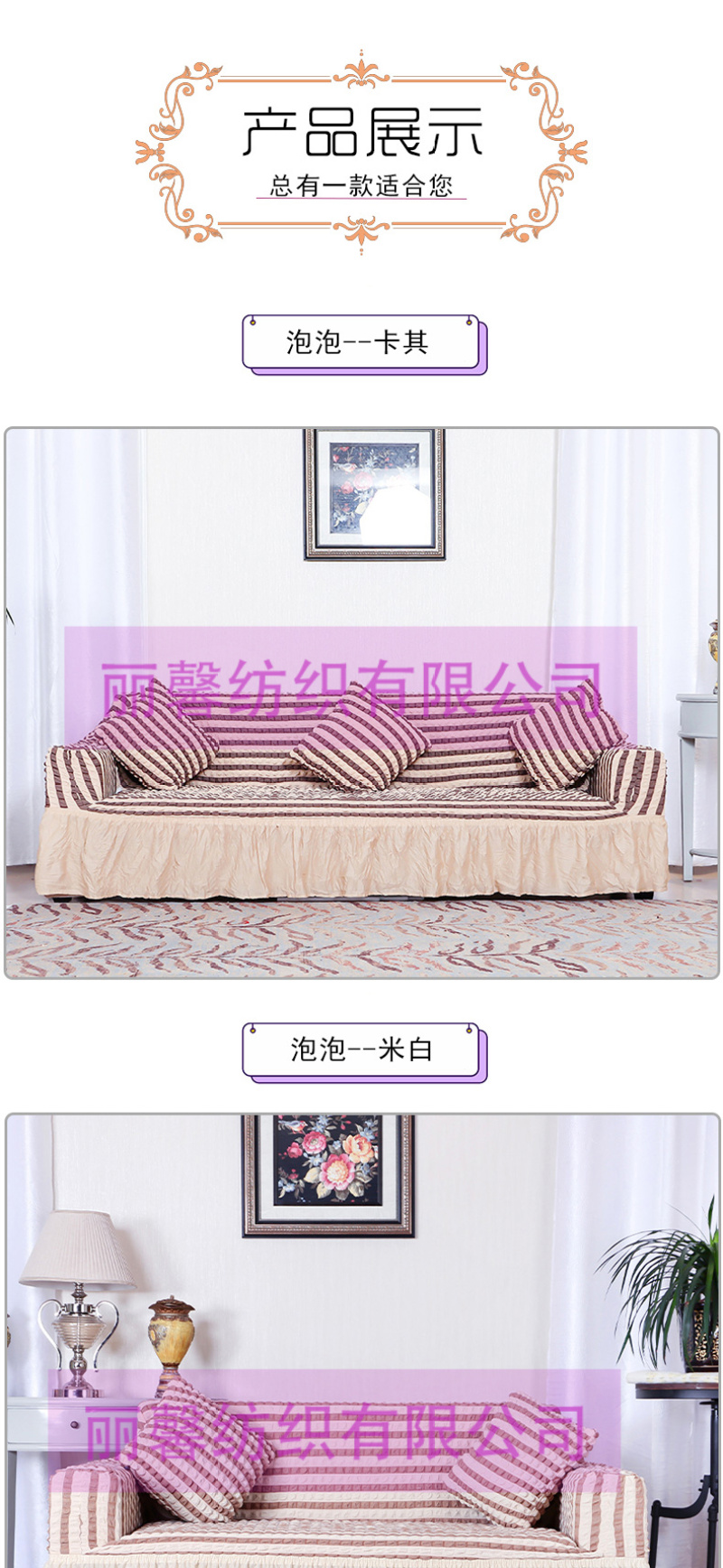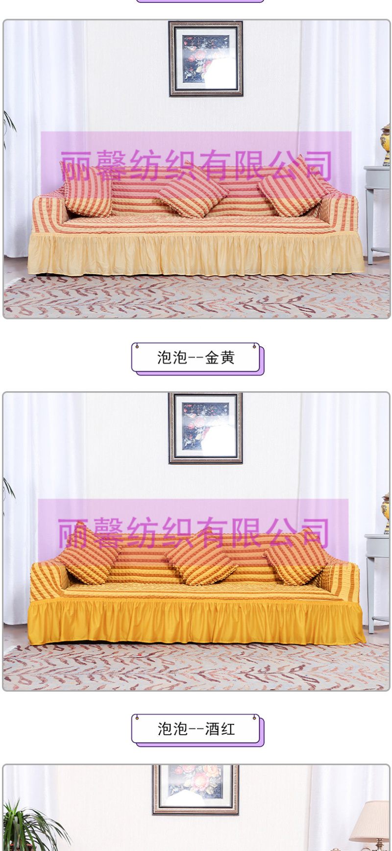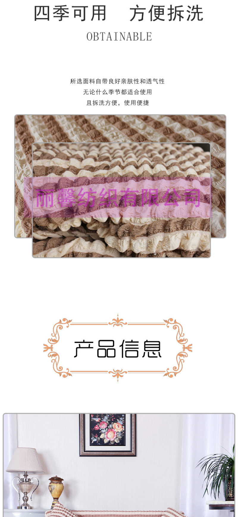 • 雅丽馨家纺主营:窗帘,沙发套,椅套,窗帘杆,弹力沙发套,弹力椅套。源头工厂,欢迎海内外采购商来店咨询洽谈!