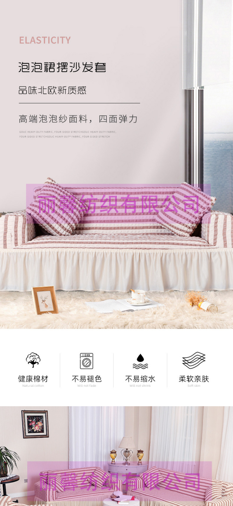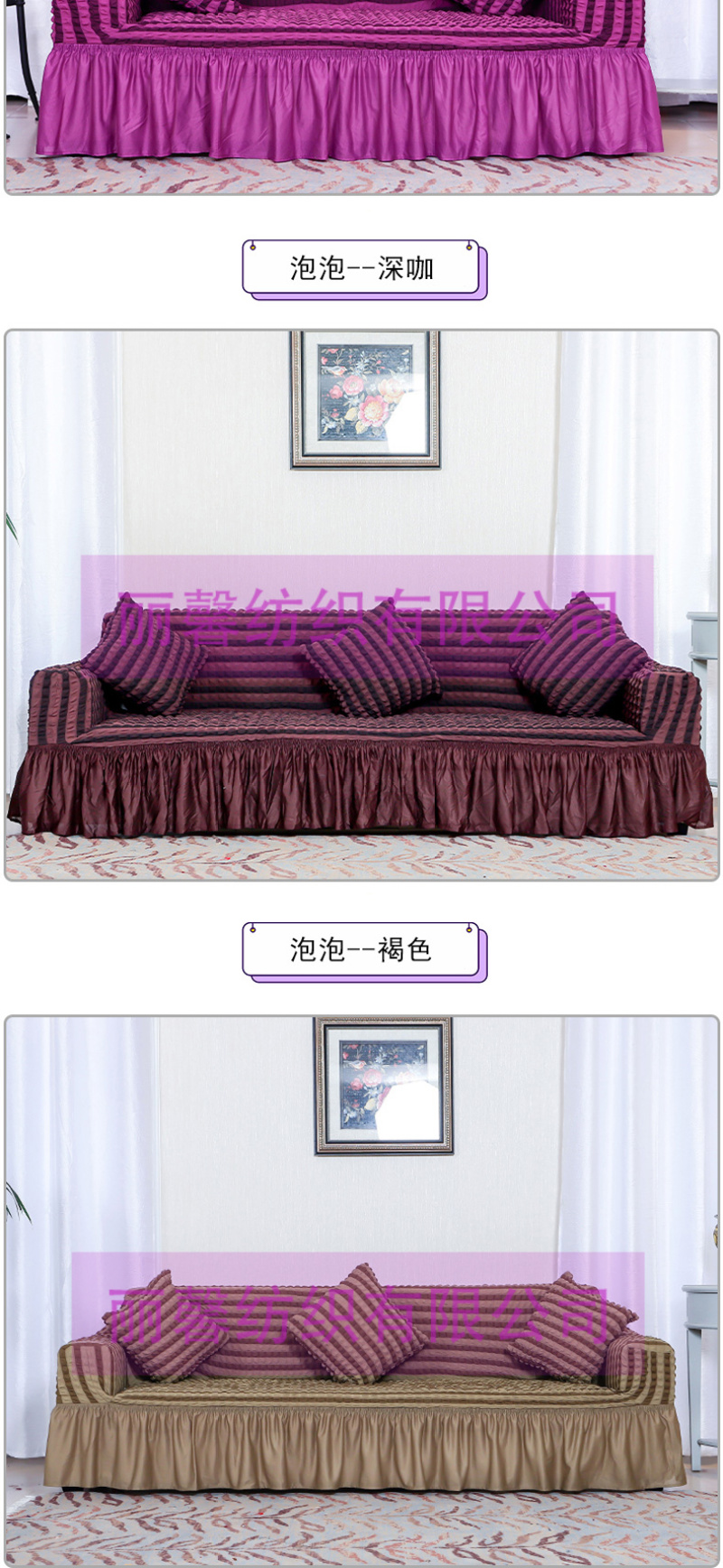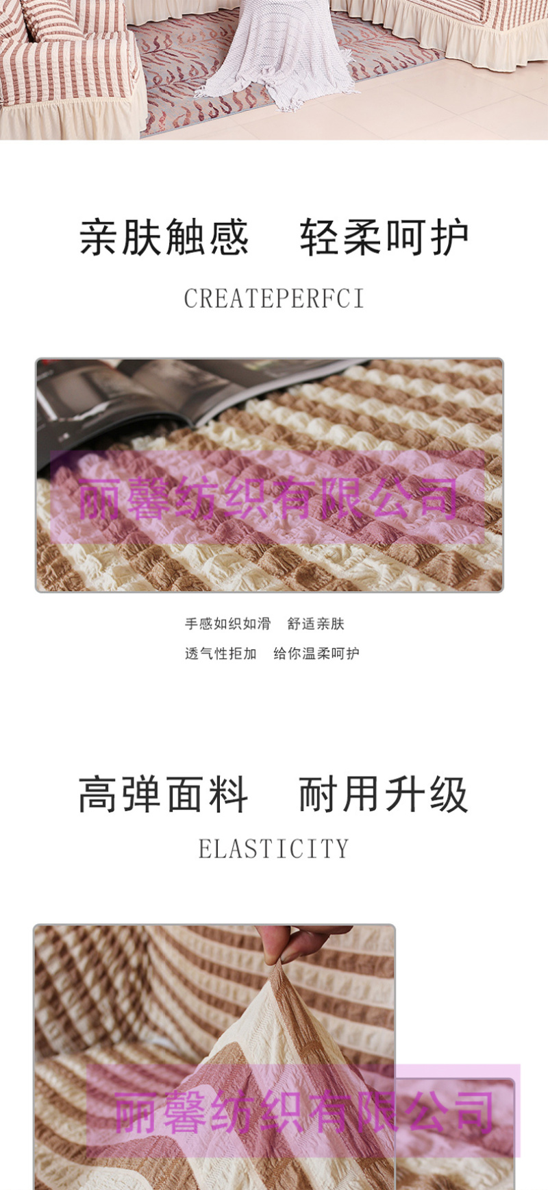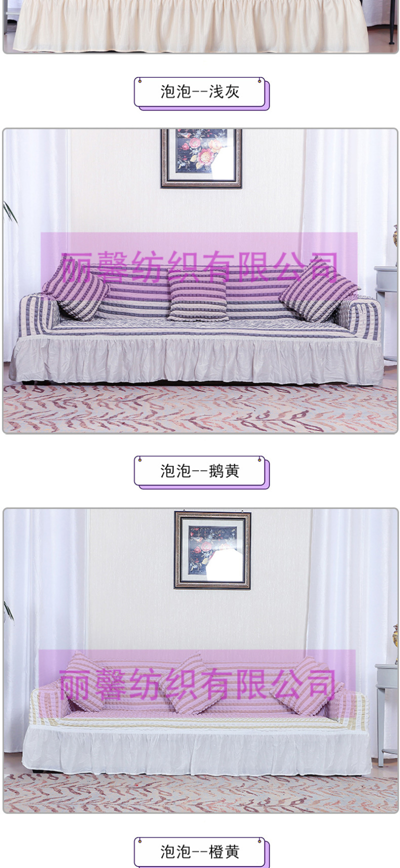 • 雅丽馨家纺主营:窗帘,沙发套,椅套,窗帘杆,弹力沙发套,弹力椅套。源头工厂,欢迎海内外采购商来店咨询洽谈!