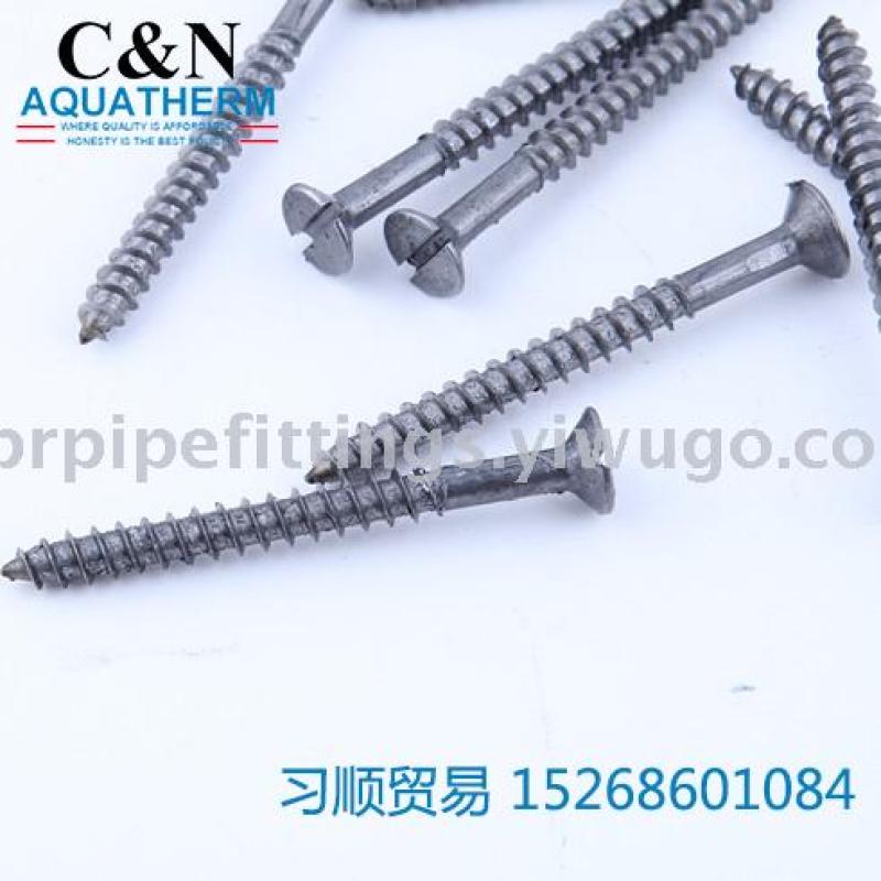 木螺丝也称木螺钉,也是与机器螺钉相似,但螺杆上的螺纹为专用的木螺钉用螺纹,可以直接旋入木质构件(或零件)中,用于把一个带通孔的金属(或非金属)零件与一个木质构件紧固连接在一起。这种连接也是属于可以拆卸连接。