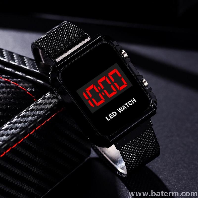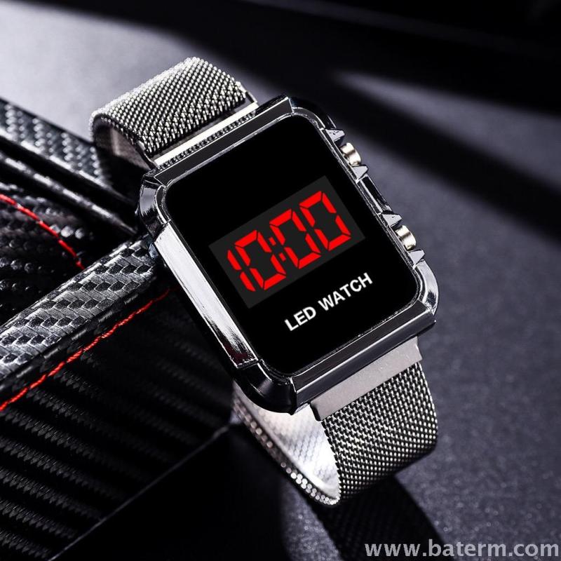 时尚热销长方形大表盘磁吸表带led运动手表男士 学生手表 English | 投诉
