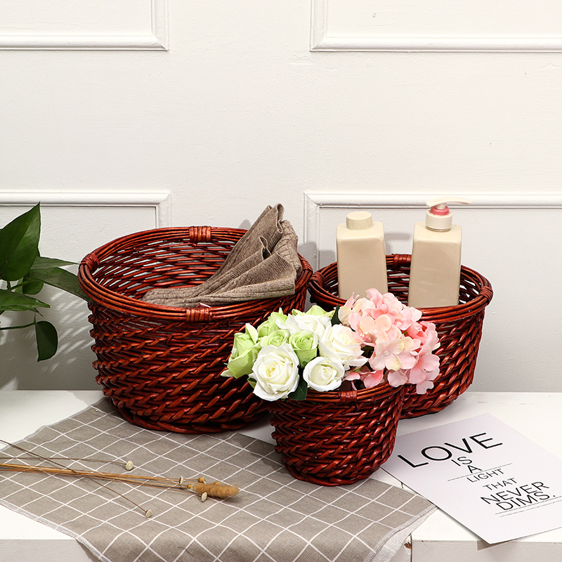 手工编织插花柳编吊兰花篮藤编家居多肉绿萝创意花盆田园小