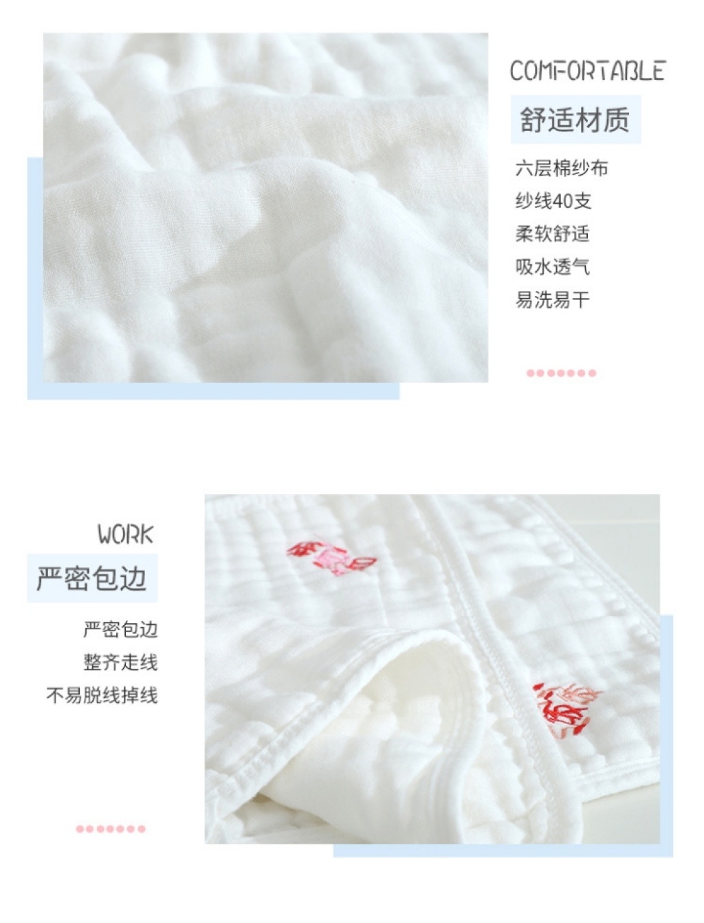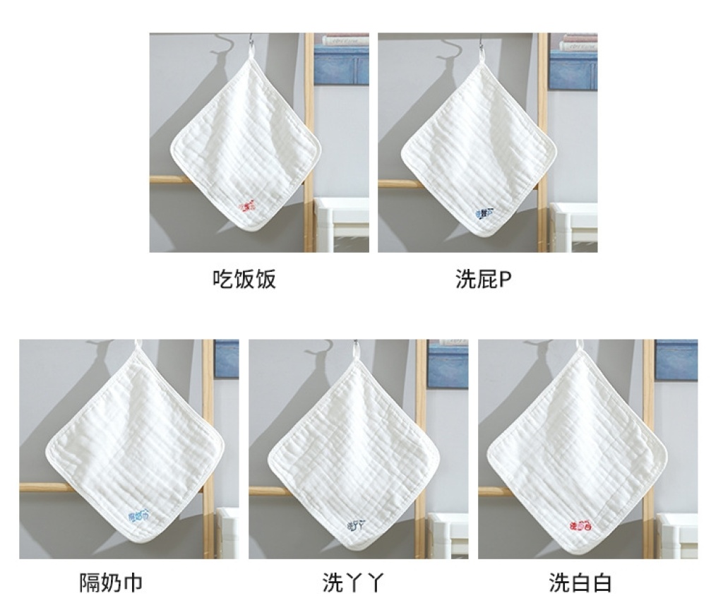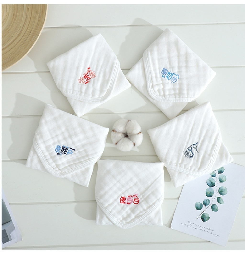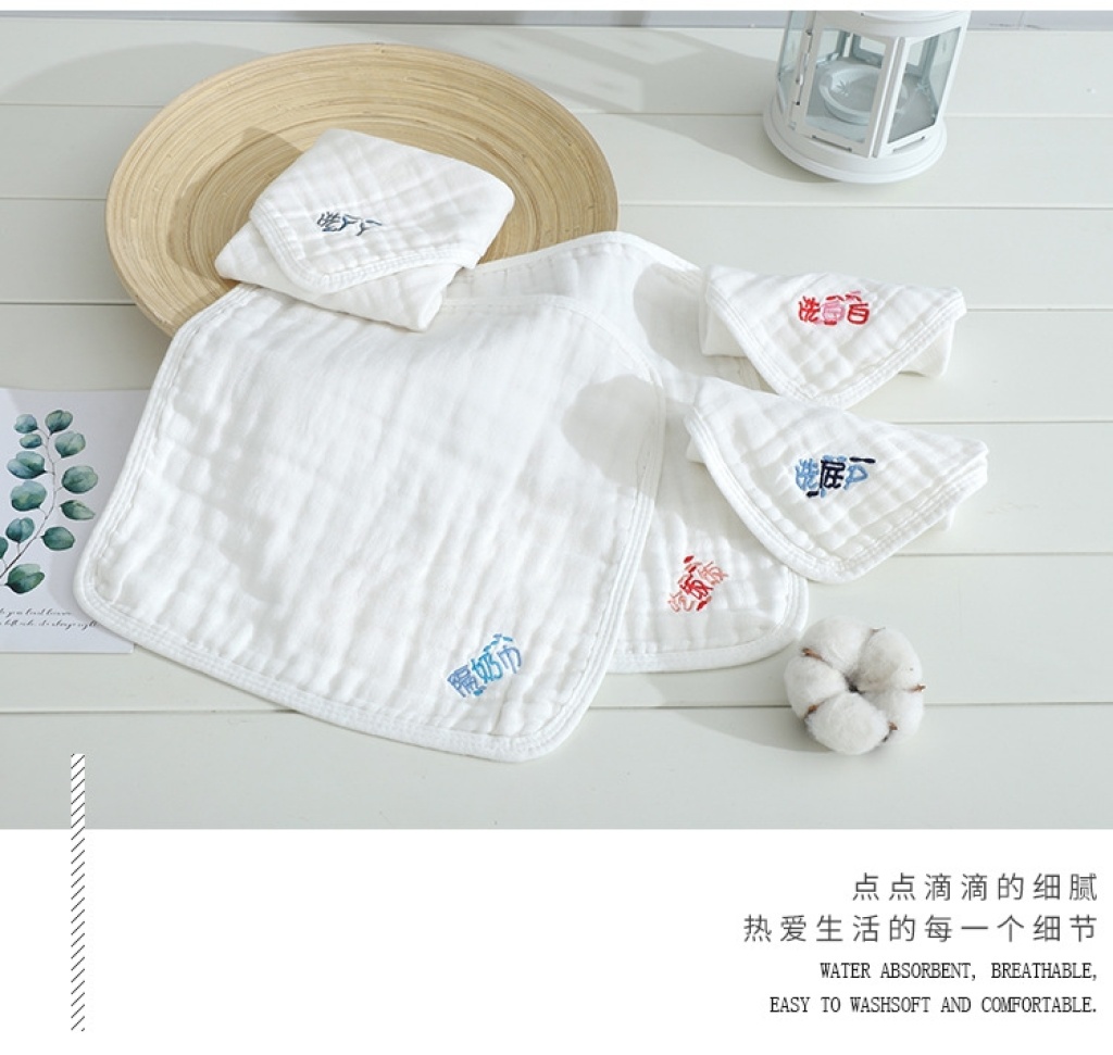 中悦5条套装绣字6层婴童纱布方巾手帕新生儿喂奶口水巾 English | 投诉
