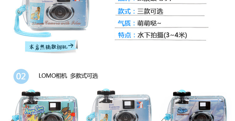一次性潜水照相机,可在水下拍摄,最深可潜到5米.内有胶卷