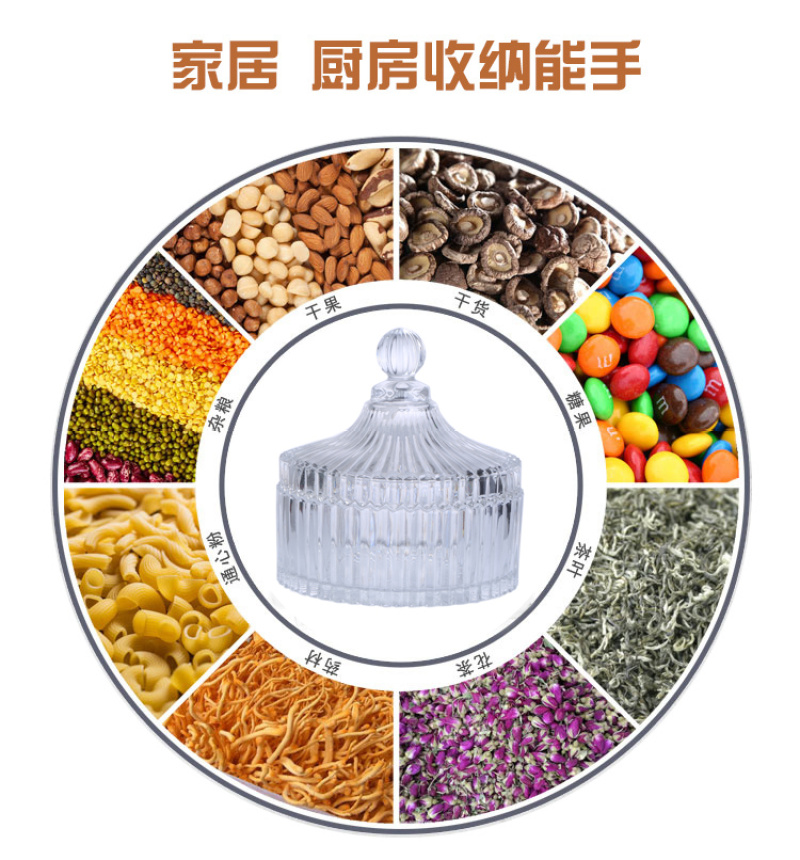 产品名称:玻璃糖缸糖果缸玻璃糖果罐储物罐茶叶罐调料罐干果零食收纳盒摆件