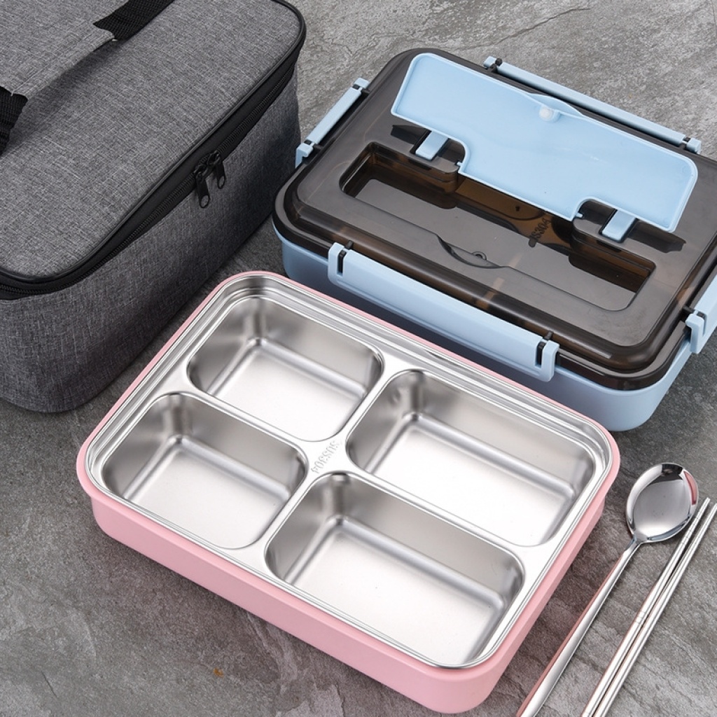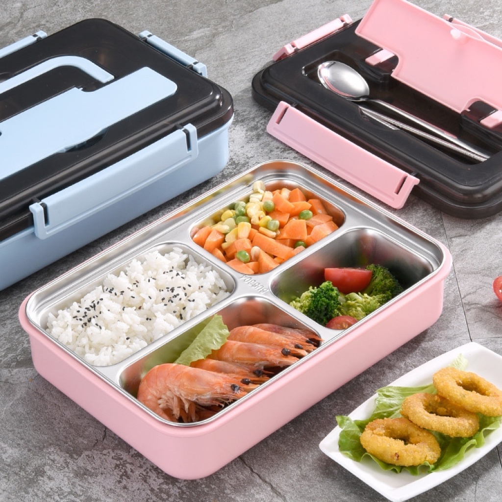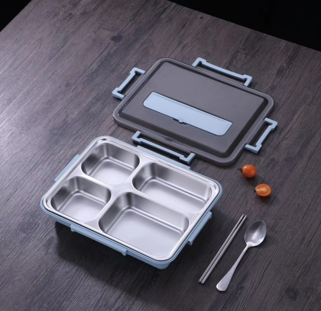 不锈钢饭盒304 小学生四分格便当儿童带盖餐具防烫双层隔食堂品级