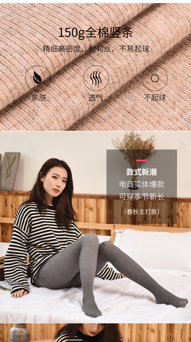 棉竖条连裤袜收腹提臀植物棉连脚裤瘦百搭中厚透气吸汗防滑压力袜